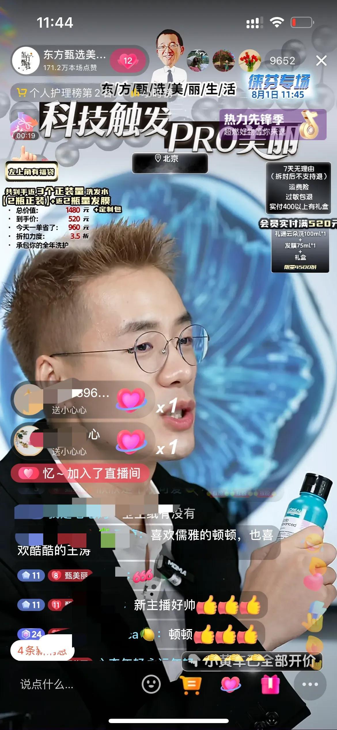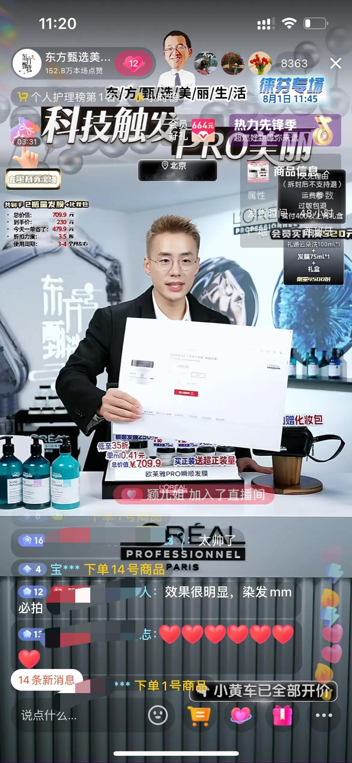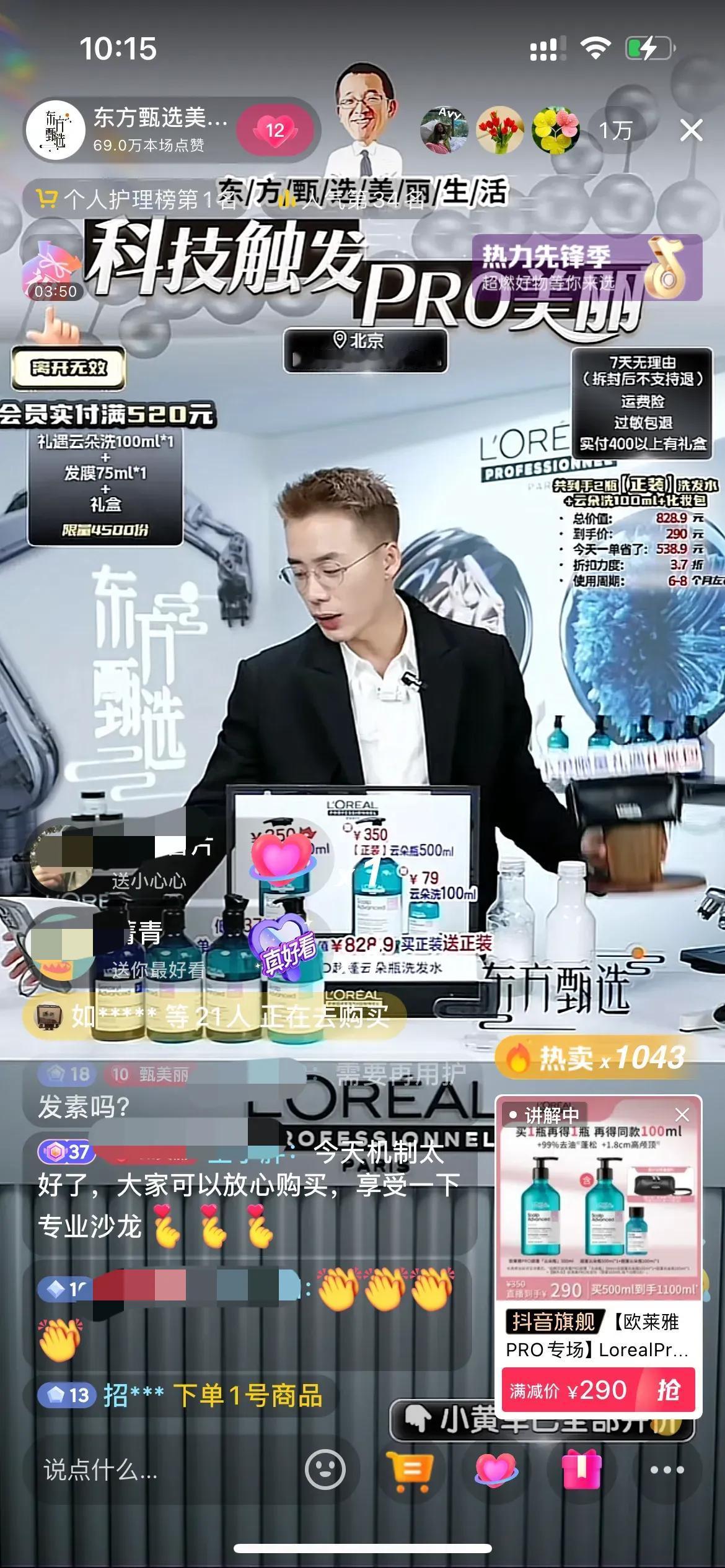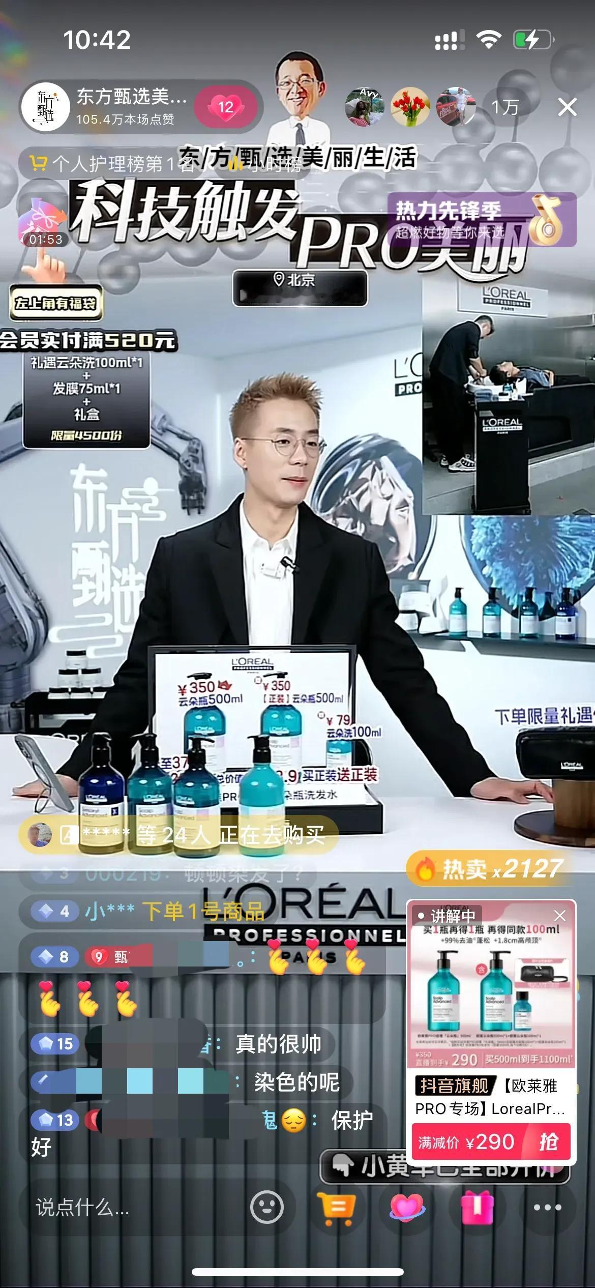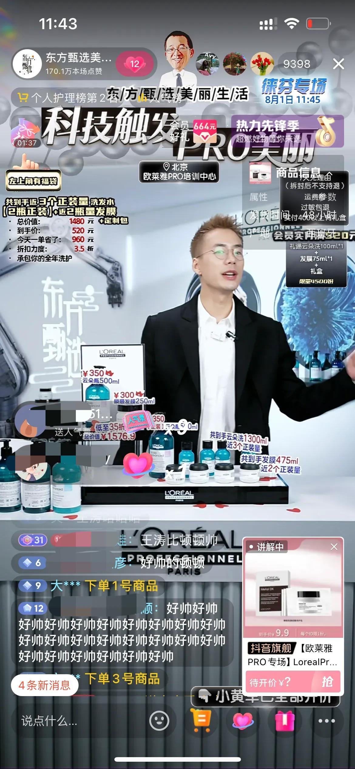 顿顿也太敬业了,今天美丽生活号的欧莱雅PRO专场,卖欧莱雅高端线的洗发护发产品,为了配合产品的展现,顿顿第一次去染发了,染发后的顿顿更帅了,给人眼前一亮的感觉!今天直播间很热闹,最多有2万多人,销量也很好,顿顿下播时品牌方还送上了鲜花感谢,顿顿也说第一次把洗护产品卖这么好,就几个品,确实不容易!顿顿讲品专业有趣,转化率很高![赞][赞][赞] 今天直播间都是刷顿顿好帅的,还有问是新主播吗?顿顿开玩笑说是新主播王涛!也有粉丝让顿顿染回黑发的,说黑发比较适合顿顿,不过我感觉第一眼还有点不习惯,越看越高级,主要还是顿顿这张脸能驾驭 。[偷笑][偷笑][偷笑]顿顿在自己账号说:不会有下一次了!大家且看且珍惜吧,短头发长得很快的,顿顿很快会恢复黑头发!#顿顿老师# #东方甄选#