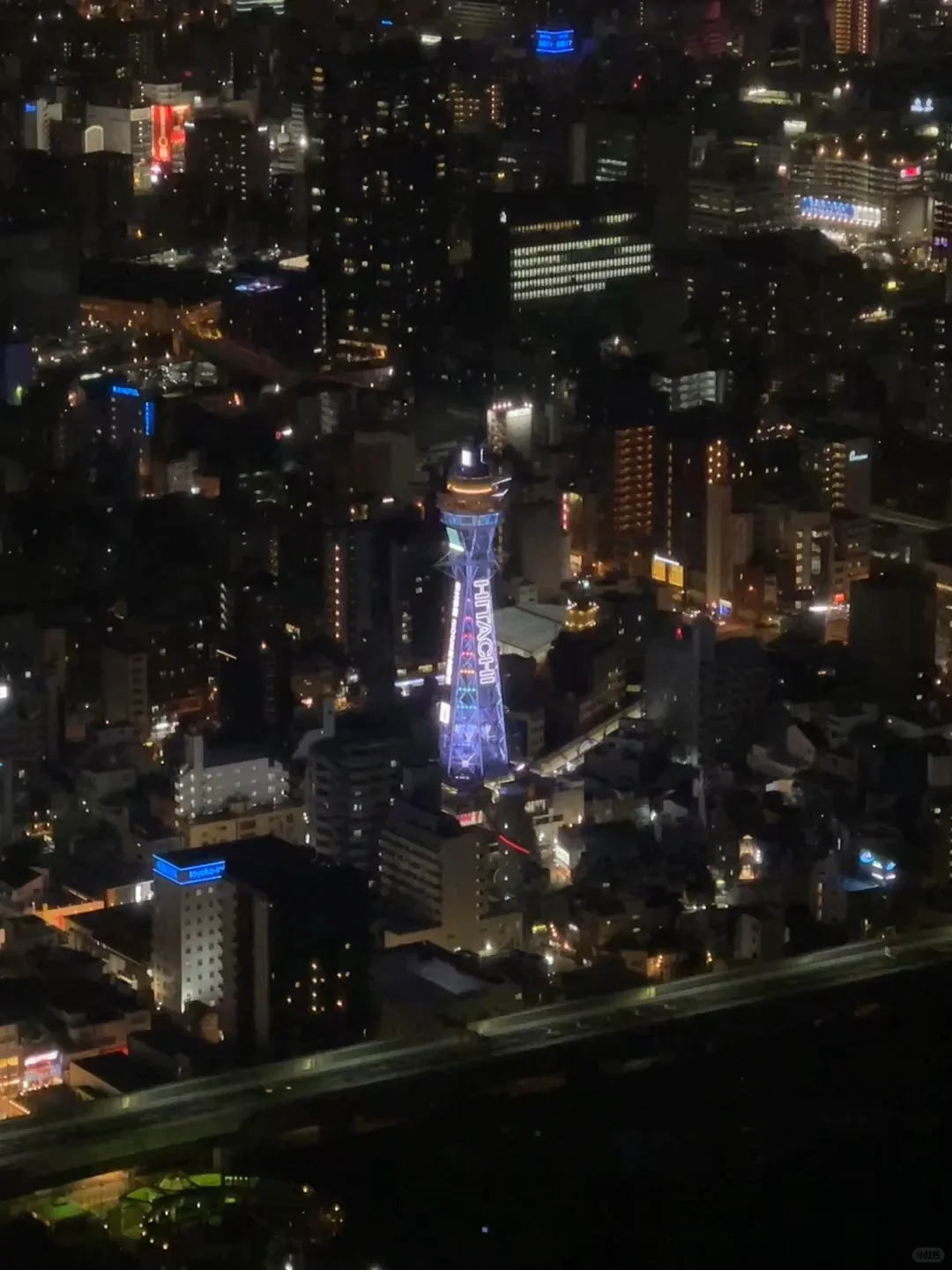 ✨大阪的地标建筑基本都能看到拍到,比如近处的通天阁、四天王寺;稍远的道顿堀摩天轮、大阪城;以及更远处的天保山摩天轮和大阪港。这是我没有去梅田蓝天大厦最终选择阿倍野最大的原因。
