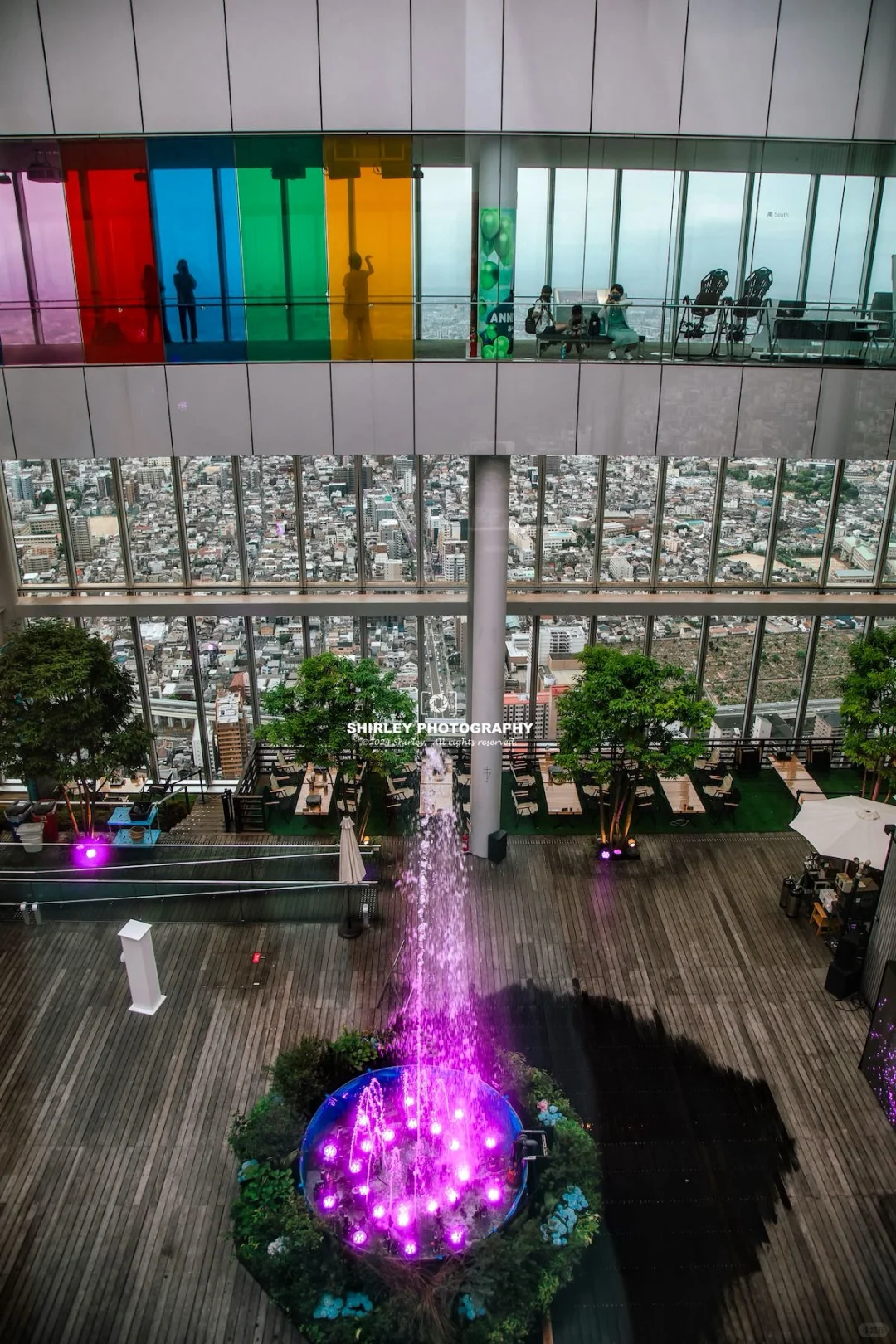 🌠位于大楼60层,环状地形+ 全落地窗,全方位观景角度映出大阪壮观的全景。流动的车河、璀璨的都市霓虹就在脚下,真实又虚幻。