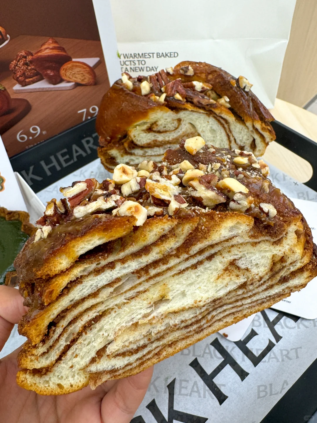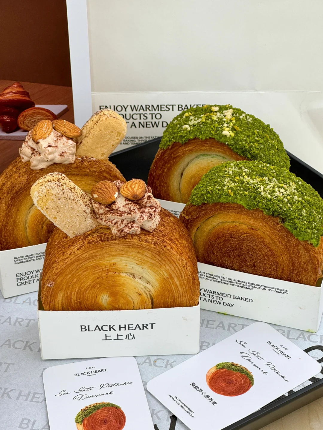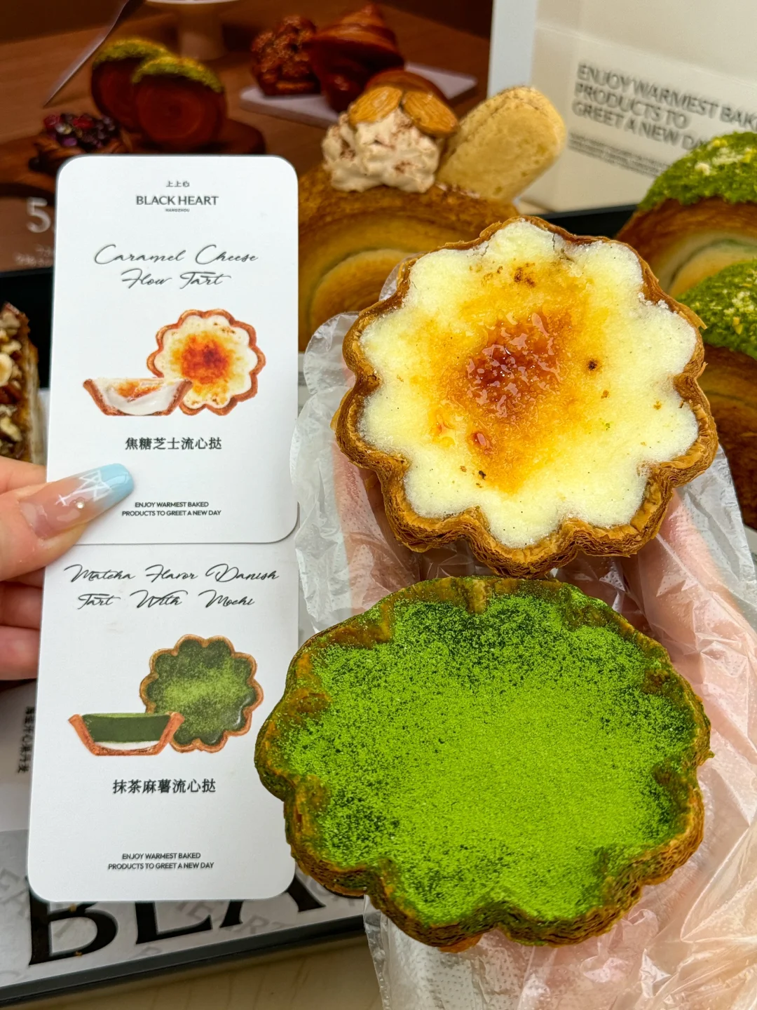 西溪印象城新开的!面包脑袋速速集合啦~最近开业都有活动敲划算!! ✔️霸气肉桂PLUS 肉桂脑袋记得拿这款!脑袋上满当当的坚果🌰好大一块尊嘟好爱~ ✔️抹茶麻薯流心挞/焦糖海盐芝士流心挞/巧克力脆珠挞 三款蛋挞都可以无脑冲!我个人偏爱❤️抹茶!一口咬下去是浓郁的抹茶流心🍵和糯叽叽的麻薯 ✔️海盐开心果丹麦 酥到掉渣的开心果丹麦😋开心果奶油好好吃🤤