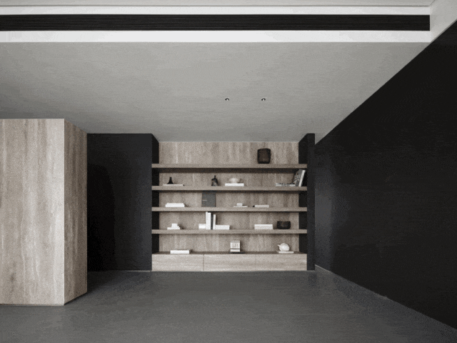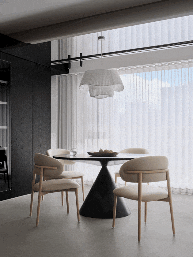 墙体以简单清晰的材质划分,断开之处则成为空间呼吸的节奏。我们未对墙体做过度的装饰与雕琢,仅让自然的肌理和纯粹的形体相融。这种从空间中散发的呼吸感,属于空间,属于生活,更是空间设计对居住者生活的温柔退让。