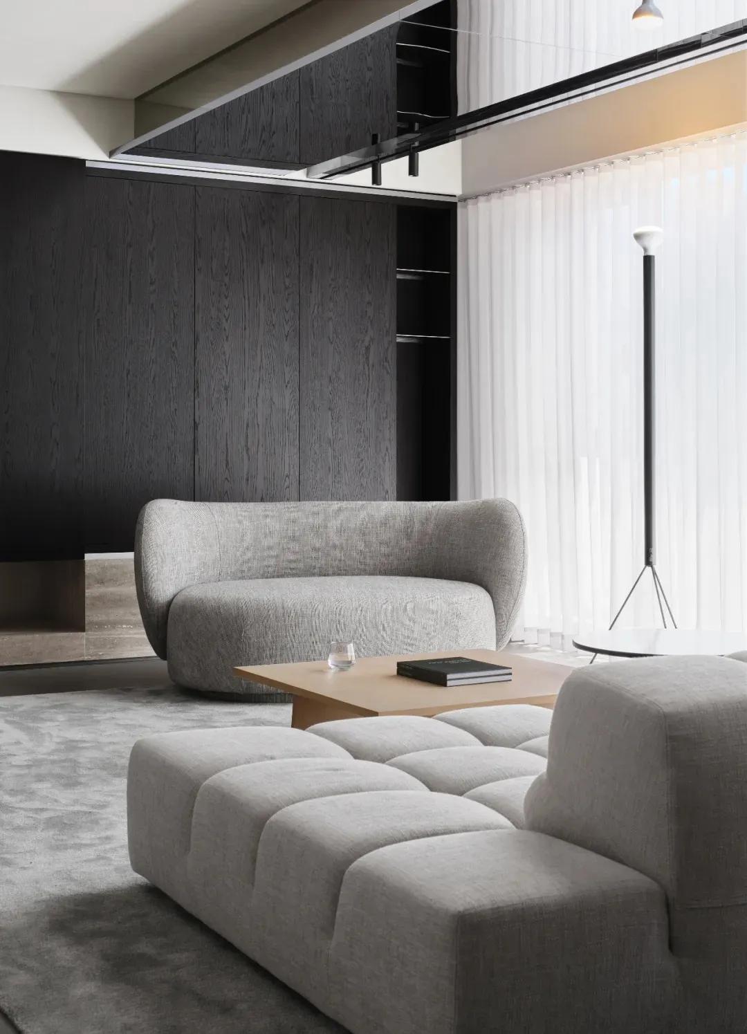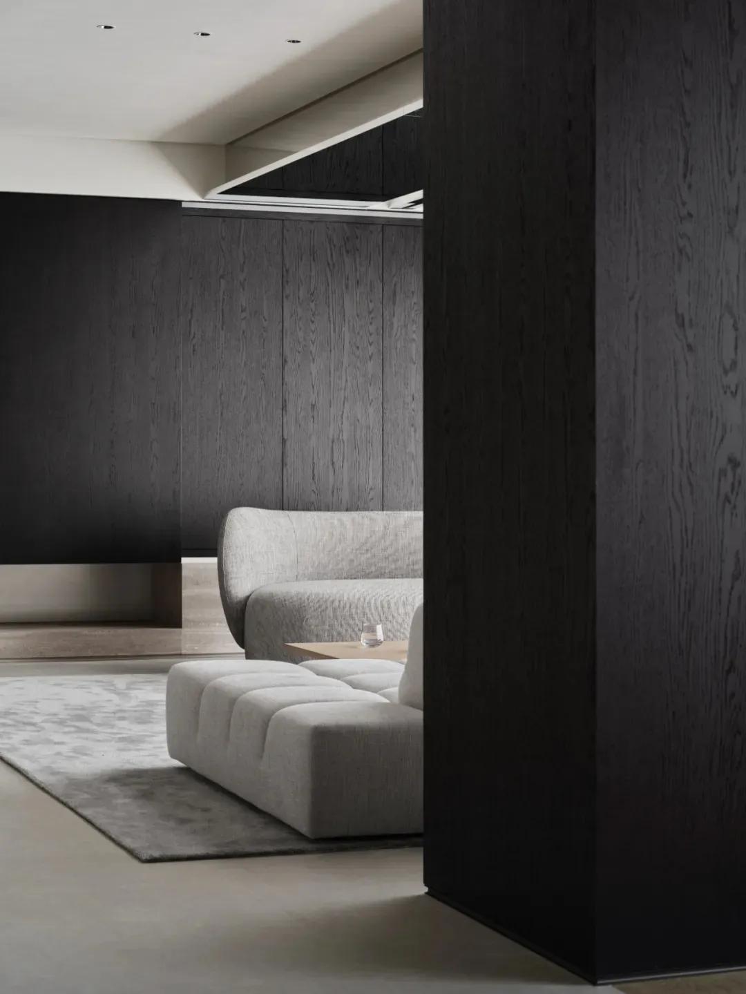 对材料选择持有近乎偏执的态度,严格控制着材质出现的种类。空间服务于居住者与生活,其本身及所用材质都应保持纯净,为居住者提供更舒适的感官体验,而非无节制的堆砌多余造型、无端叠加不必要的材质。