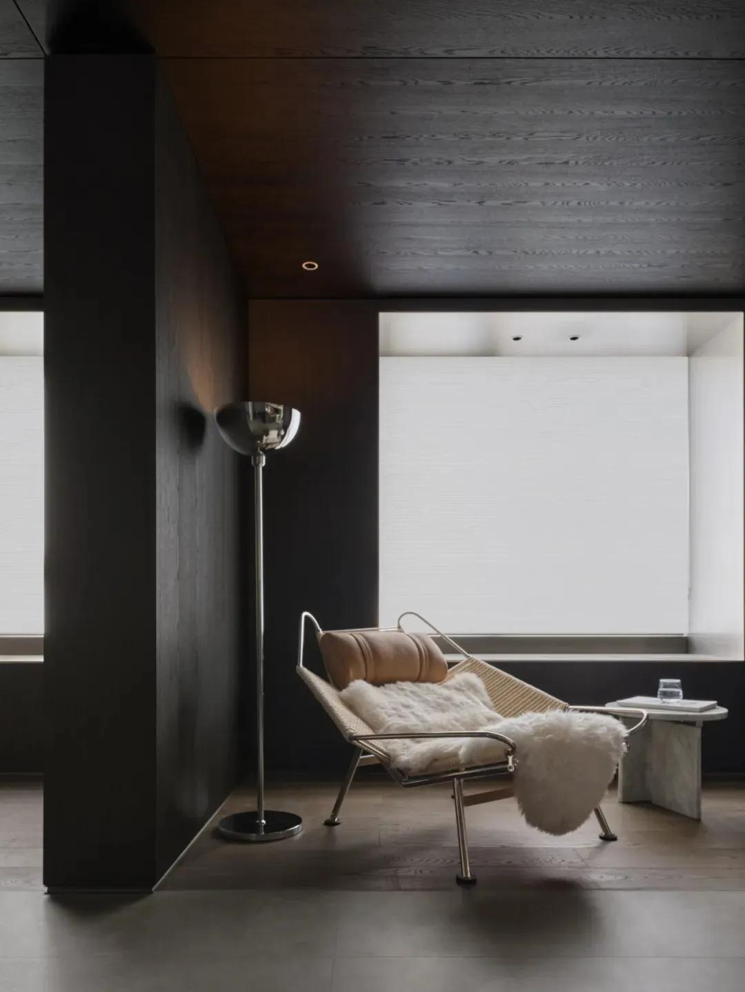 光线会因开口的进深、形体方向的变化转折、窗帘的质地,以及受光面的质感,产生丰富的层次变,从而产生了从亮到暗的多个层次,光线本身也参与了空间结构感与韵律感的塑造。