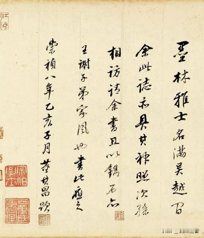 董其昌一辈子“高产”,他或许是把赵孟頫视为自己追逐的目标,日书万书,到老也不忘精进自己的书艺。 他的书法风格,一直以晋唐为自己的师承对象,特别是颜真卿,他将颜氏的笔法,风格内化于自己的书法语言中。 这件行书《项墨林墓志》,其结字方式独特,把内擫和外拓相结合,使得字形有紧凑之感,且状态舒展。欹侧与平正交替出现,高低错落有致,收放自如。 这件作品,如果你喜欢轻松一点风格,不妨多看看! #行书##毛笔书法##书法##书法家作品分享#
