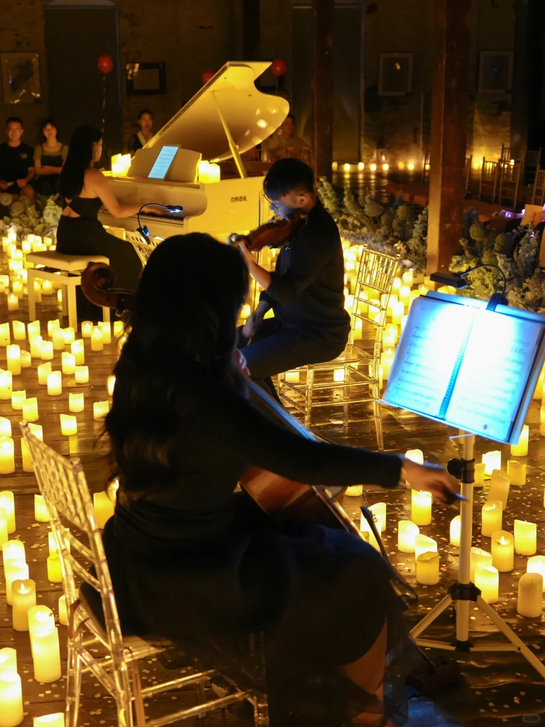 前几天去了上海嘿夜烛光音乐会,听名字就知道一定很浪漫,再加上双J的梦幻联动怎能不心动呢~钢琴、大提琴还有小提琴的三重奏,每首旋律都耳熟能详,真的是听觉盛宴~中场休息的时候还有对情侣过了场生日,氛围特别好,我感觉这边也很适合求婚hhhh 现场也有专业摄影师可以为大家拍照,总之很好的一次体验~