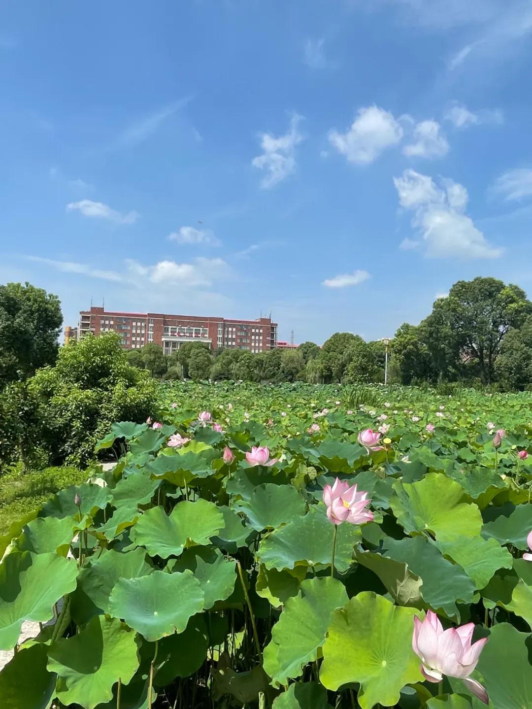 绝句/学府荷韵 荷叶田田展绿韵, 荷花朵朵舞娉婷。 学府雅院景色醉, 暗香浮动飘风情。