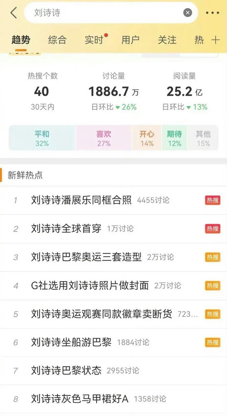 巴黎奥运会才刚刚举办一周,刘诗诗就已经上了几十个奥运相关热搜了,美女真的好火啊!