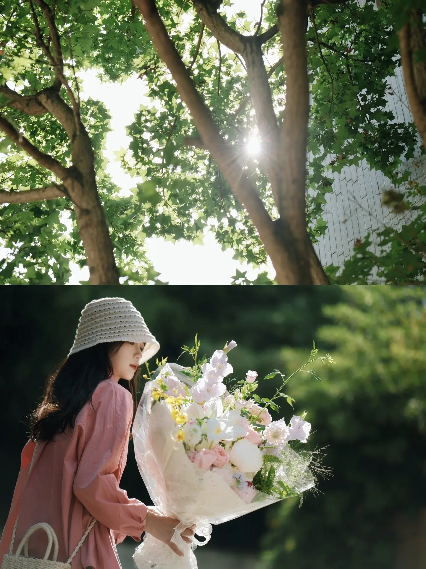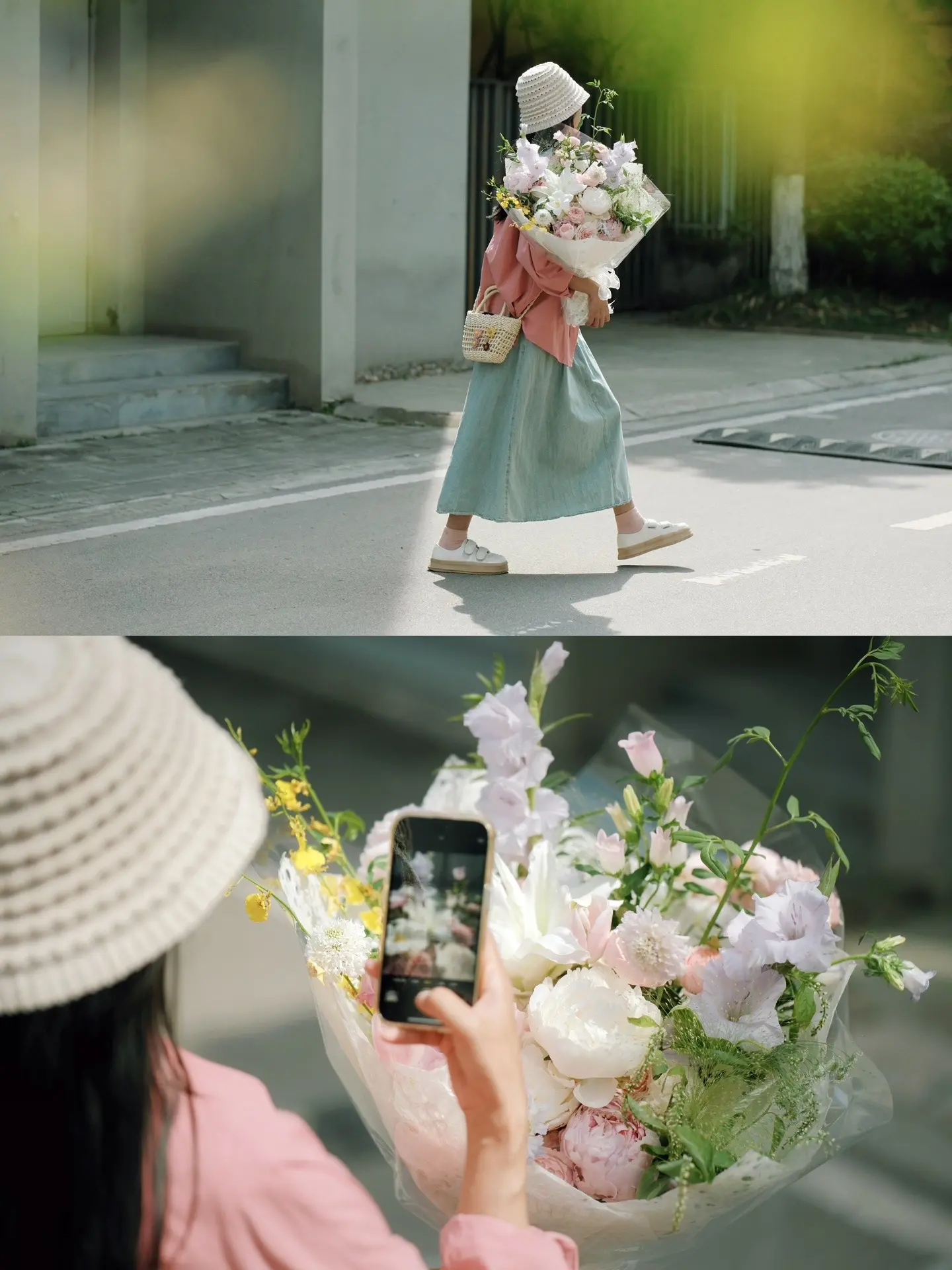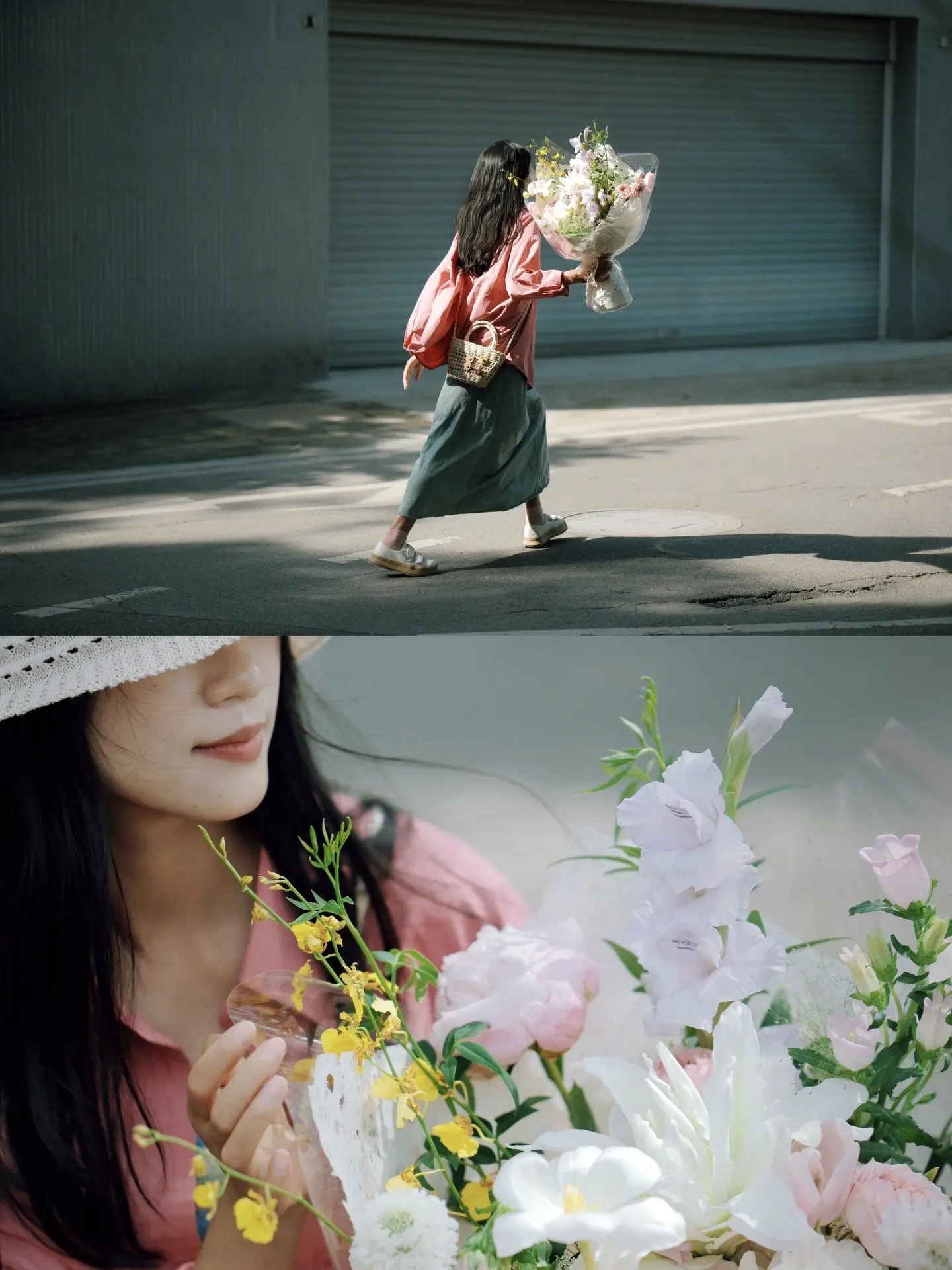 初夏文艺胶片风|🌸街道拍出电影故事感。好喜欢抱着花束拍照呀 记录初夏的模样 /