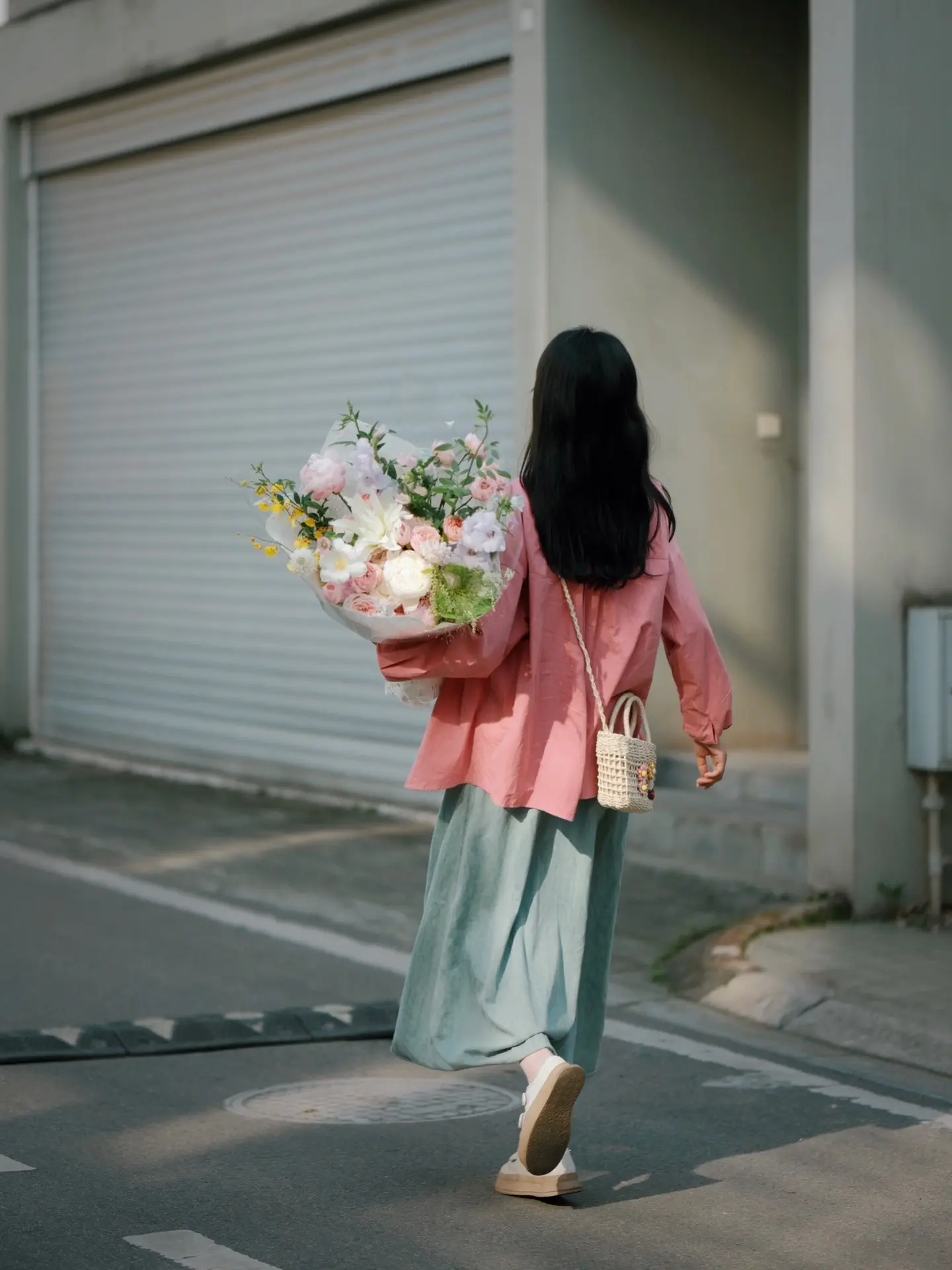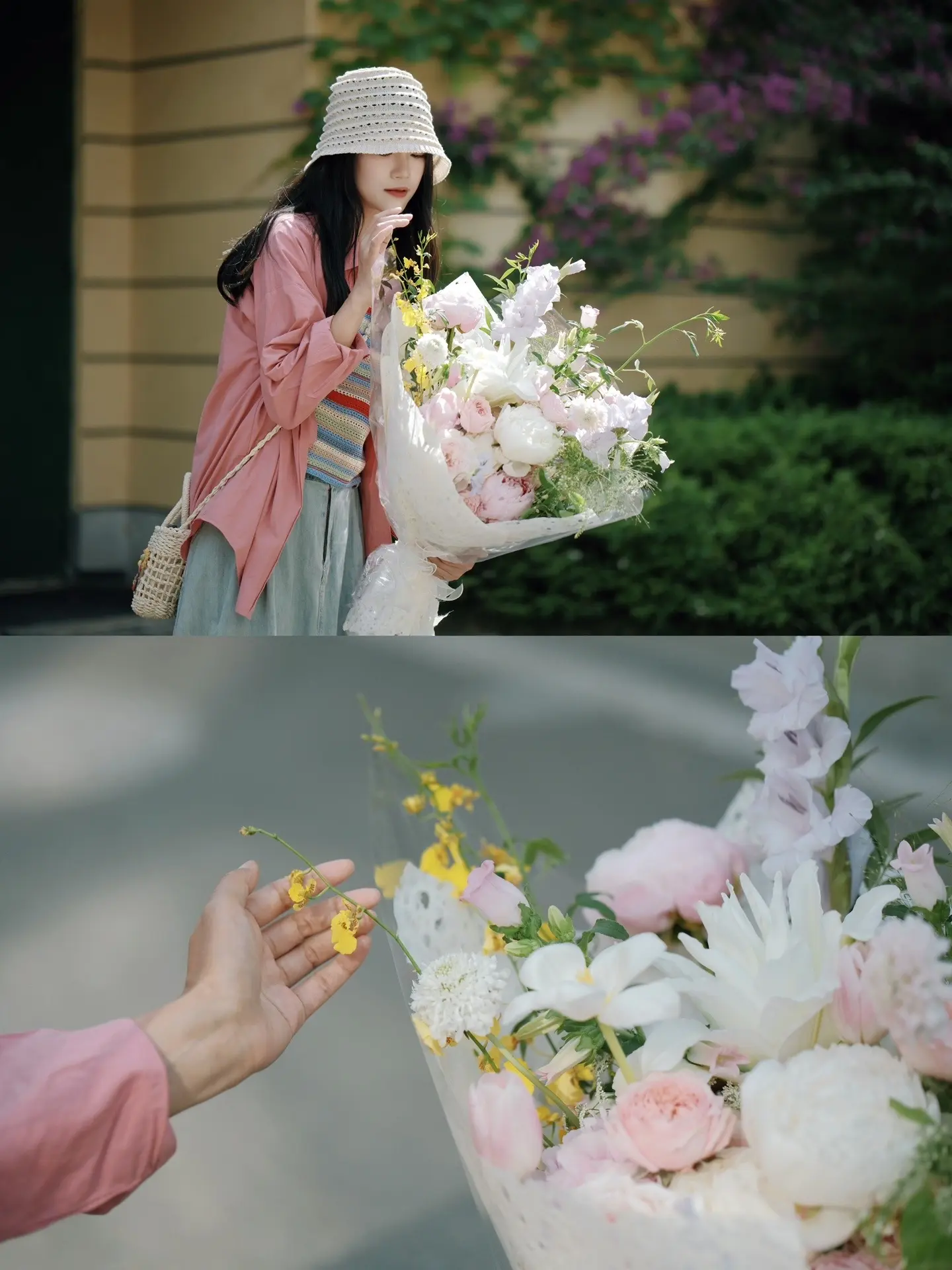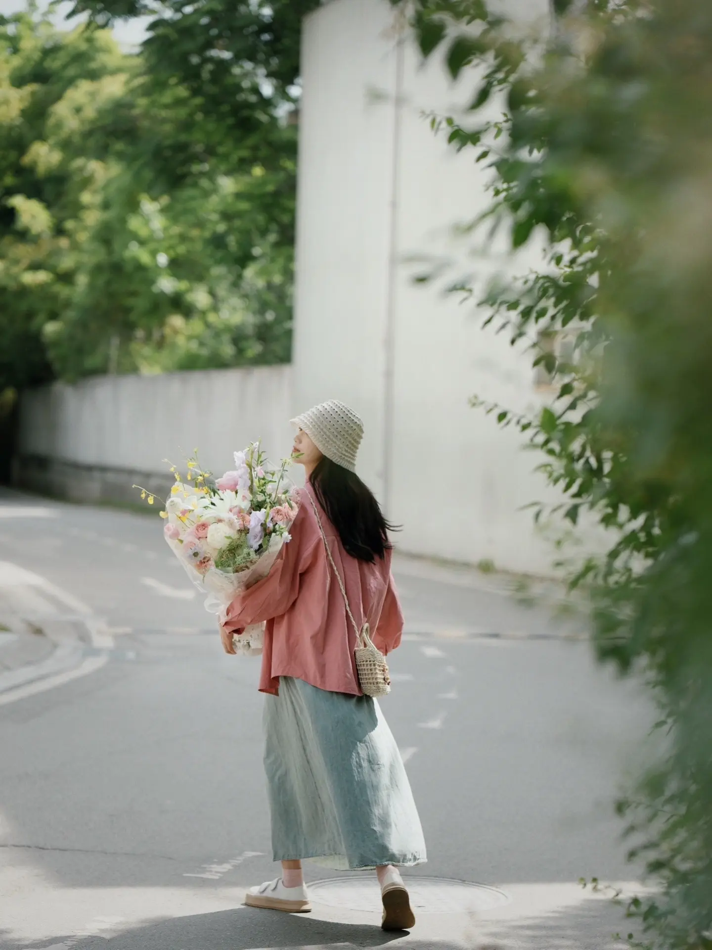 初夏文艺胶片风|🌸街道拍出电影故事感。好喜欢抱着花束拍照呀 记录初夏的模样 /