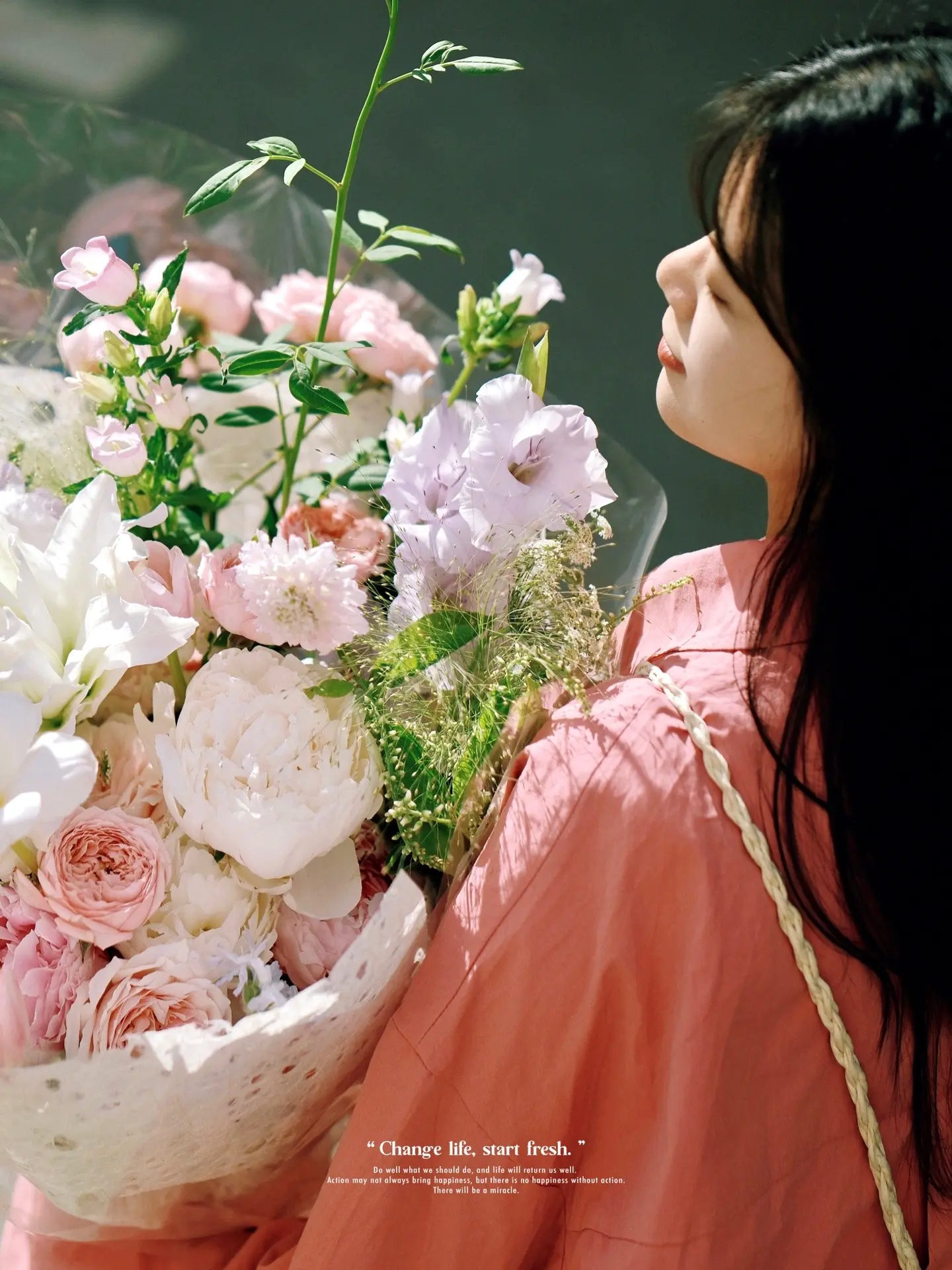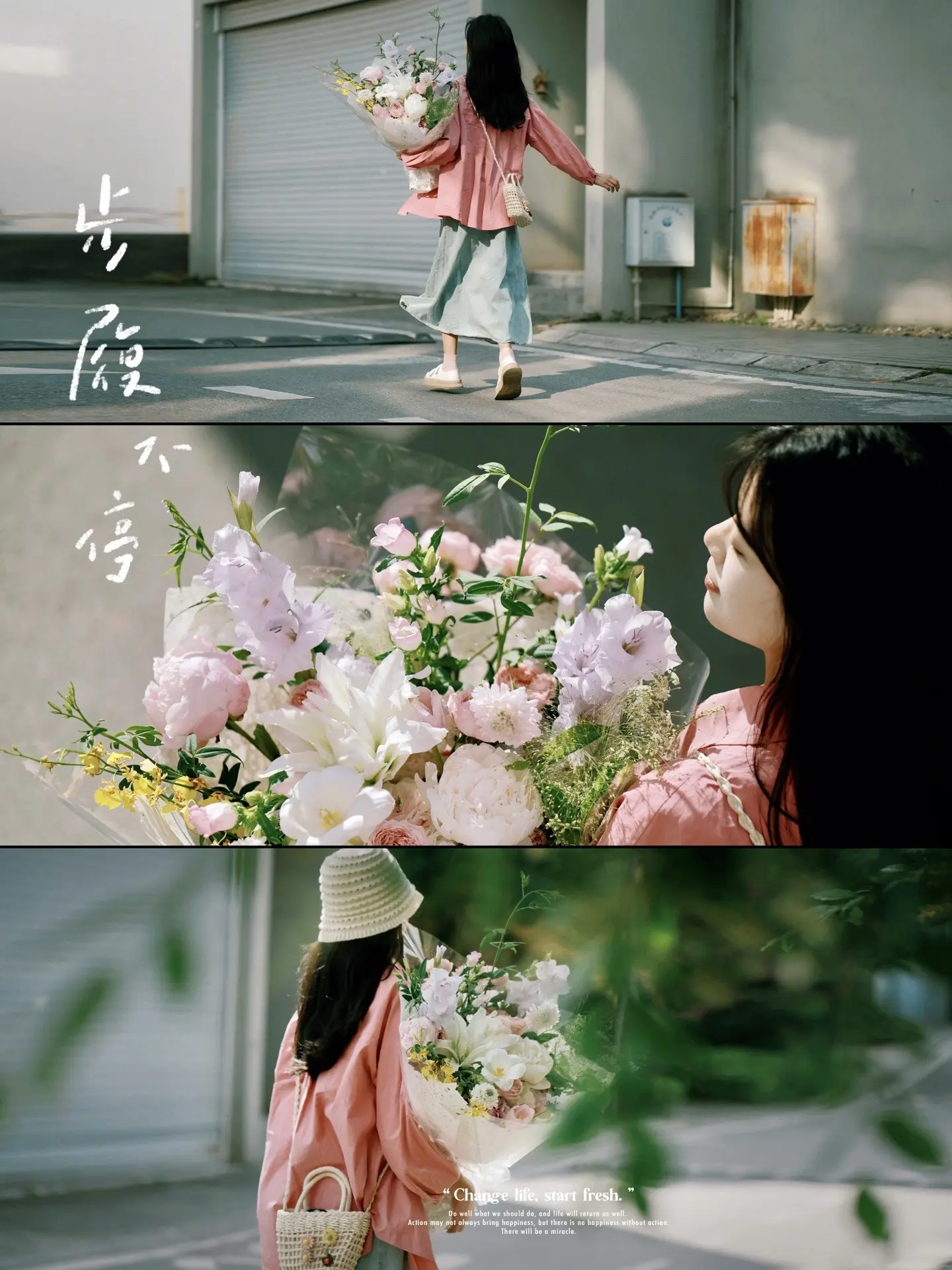 初夏文艺胶片风|🌸街道拍出电影故事感。好喜欢抱着花束拍照呀 记录初夏的模样