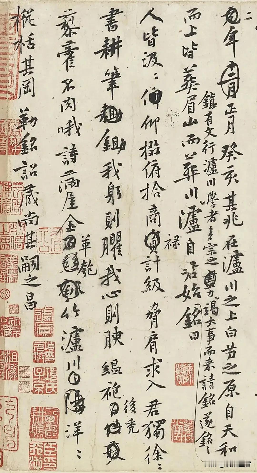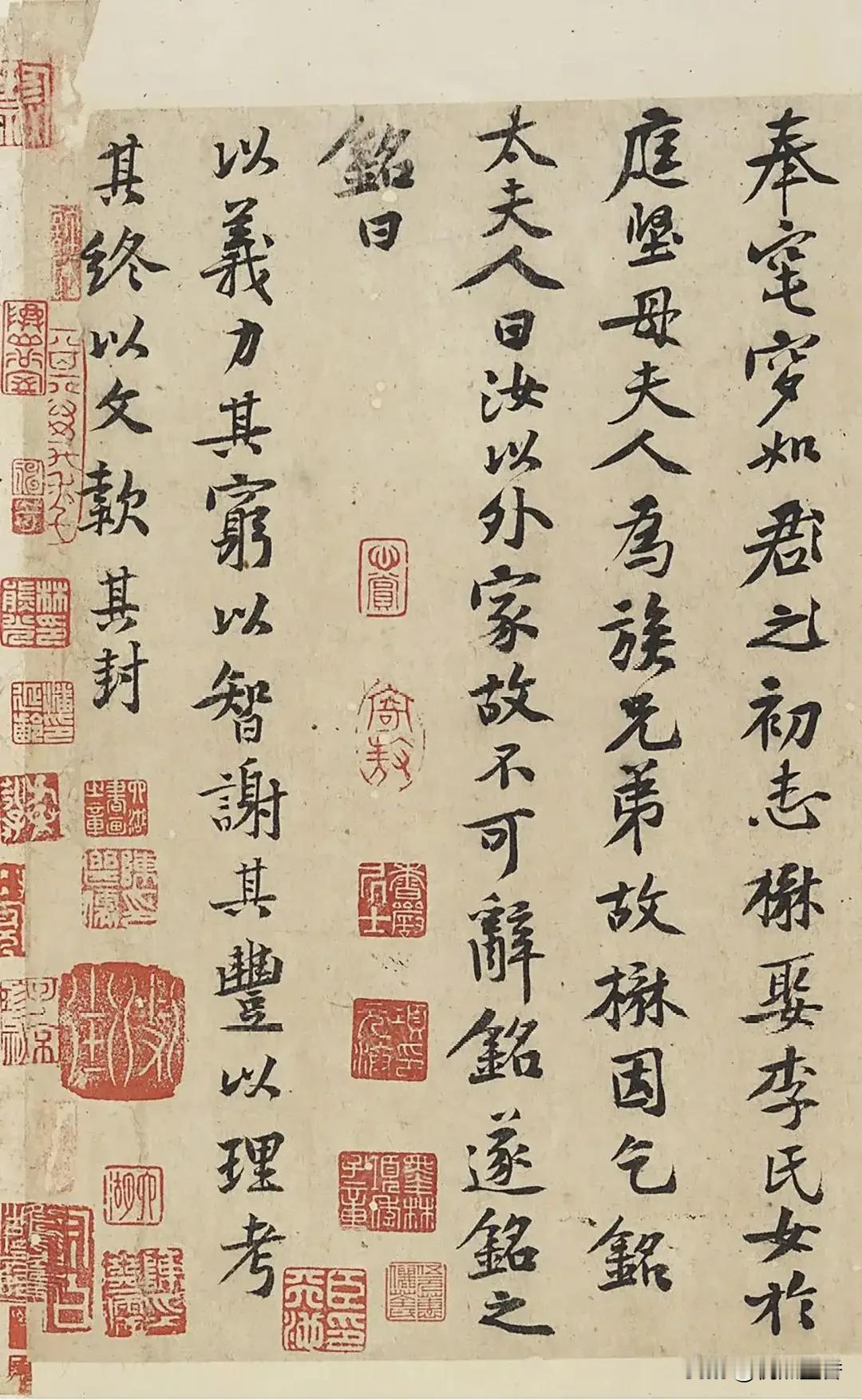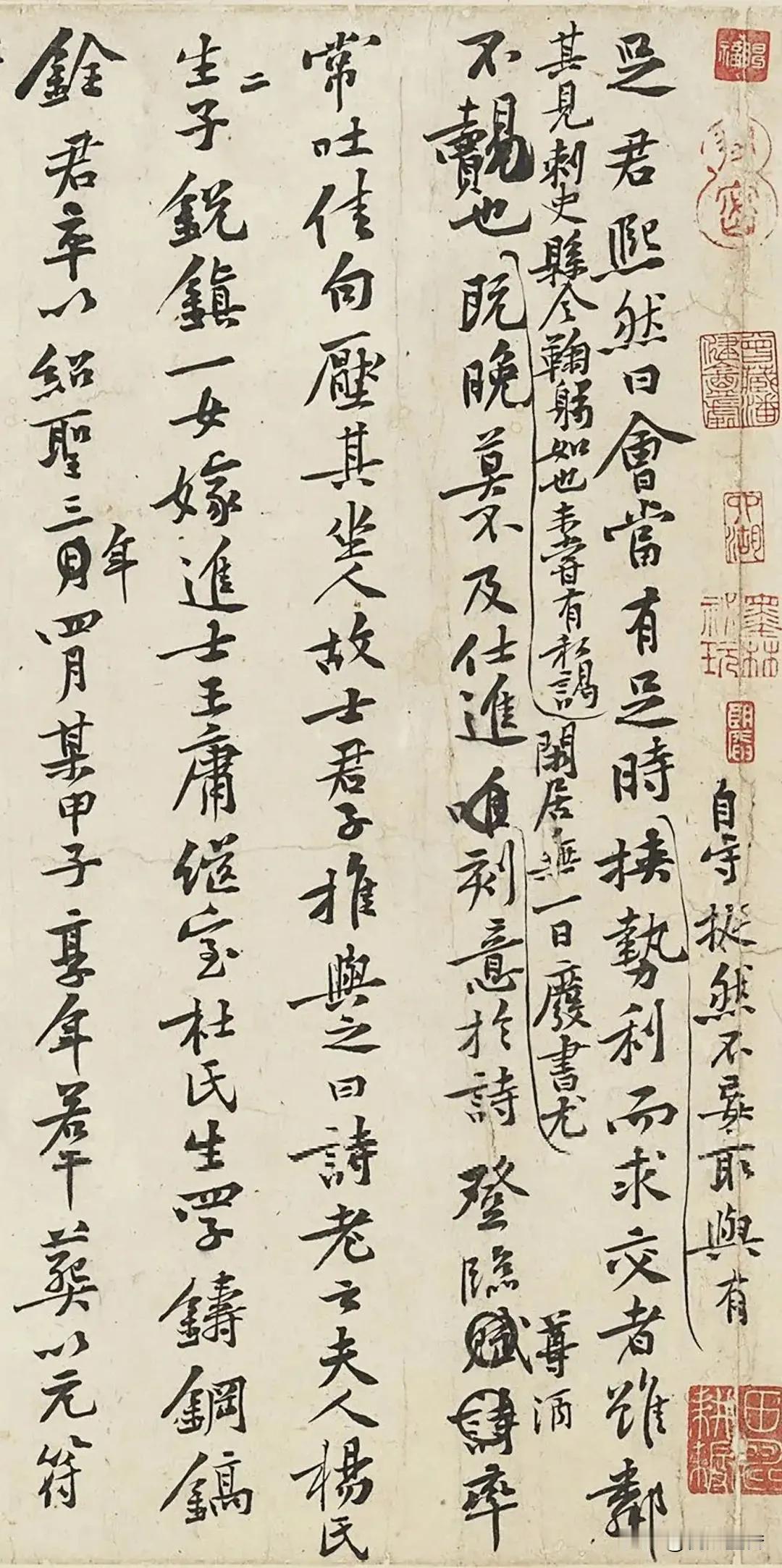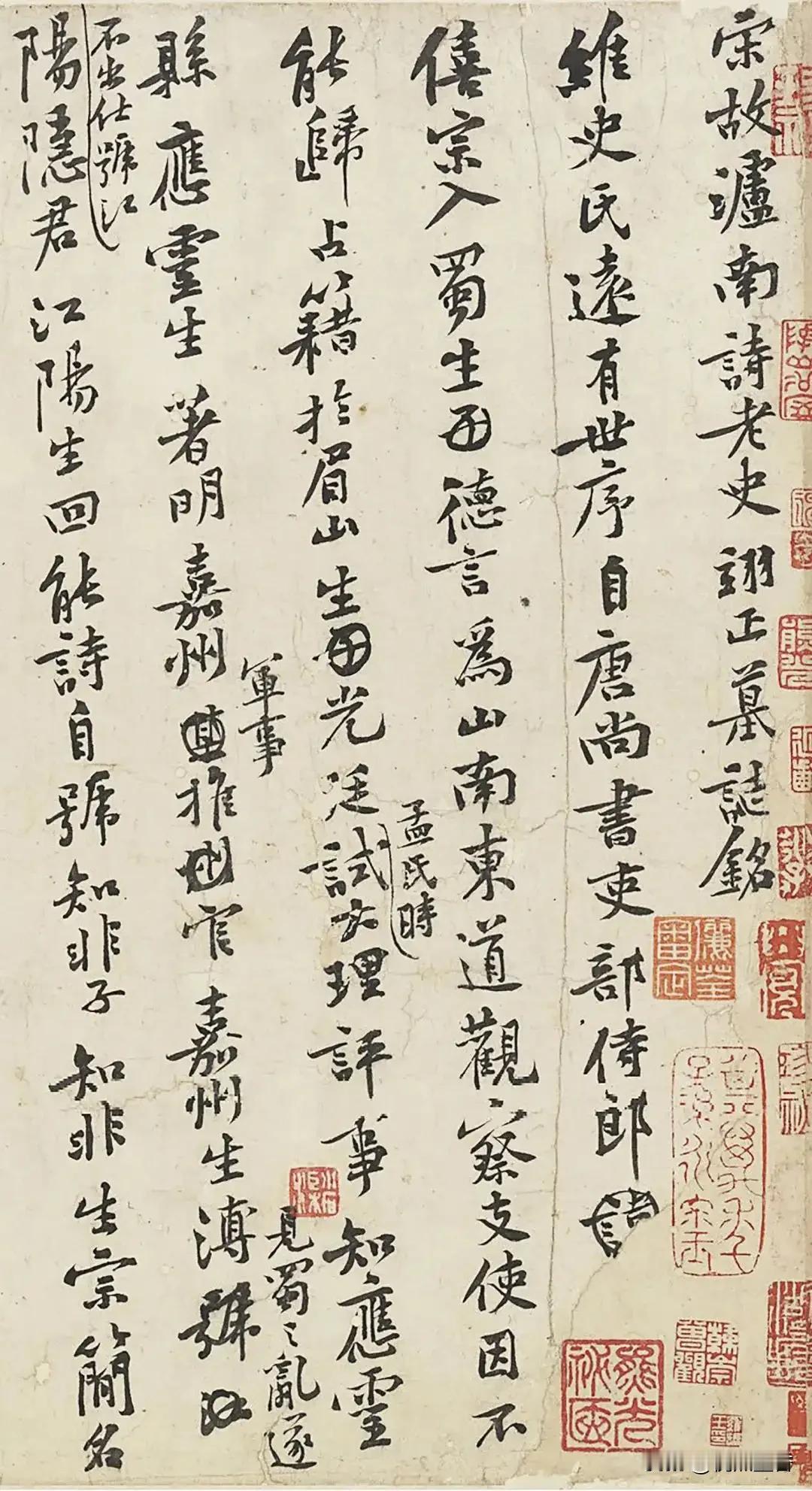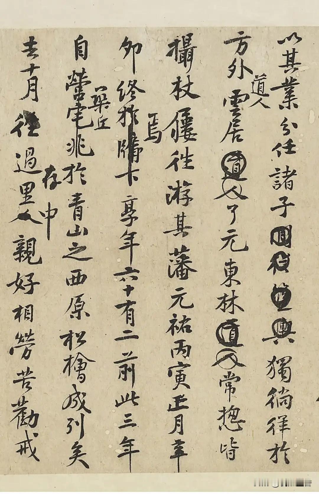 历史上,有一些作品,并不是作者写下来的正式作品,而是草稿,被人收藏,这种作品的魅力,有时反倒比正式作品更耐品味。 比如这件北宋黄庭坚行书《王史二氏墓志铭稿卷》,就是一件草稿,上面还有涂抹的痕迹。 《王史二氏墓志铭稿卷》实际上是两篇墓志铭,写的时间不是同一时间,有考据说写于黄庭坚四十至四十五岁和五十五岁前后至六十岁之间,由于是草稿,写得随性,没有丝毫做作,整体用笔简洁,不计工拙,有自然之美,这正应合了他追求的“心不知手,手不知心”境界。 #行书##书法##毛笔书法##书法爱好者#