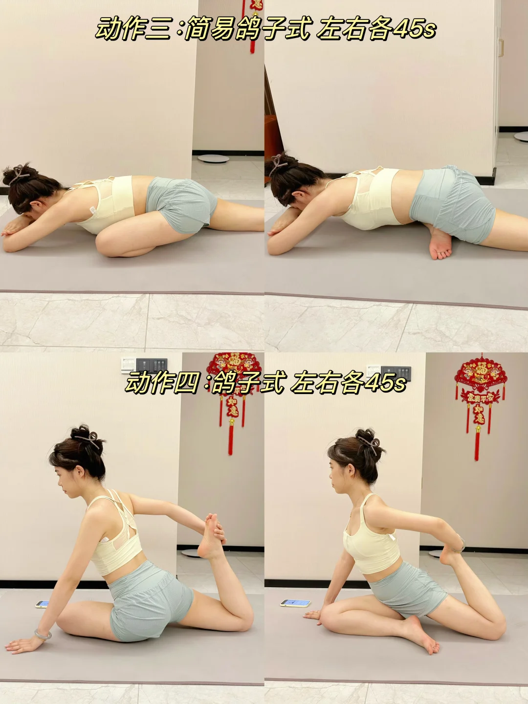 动作四:鸽子式 左右各30s