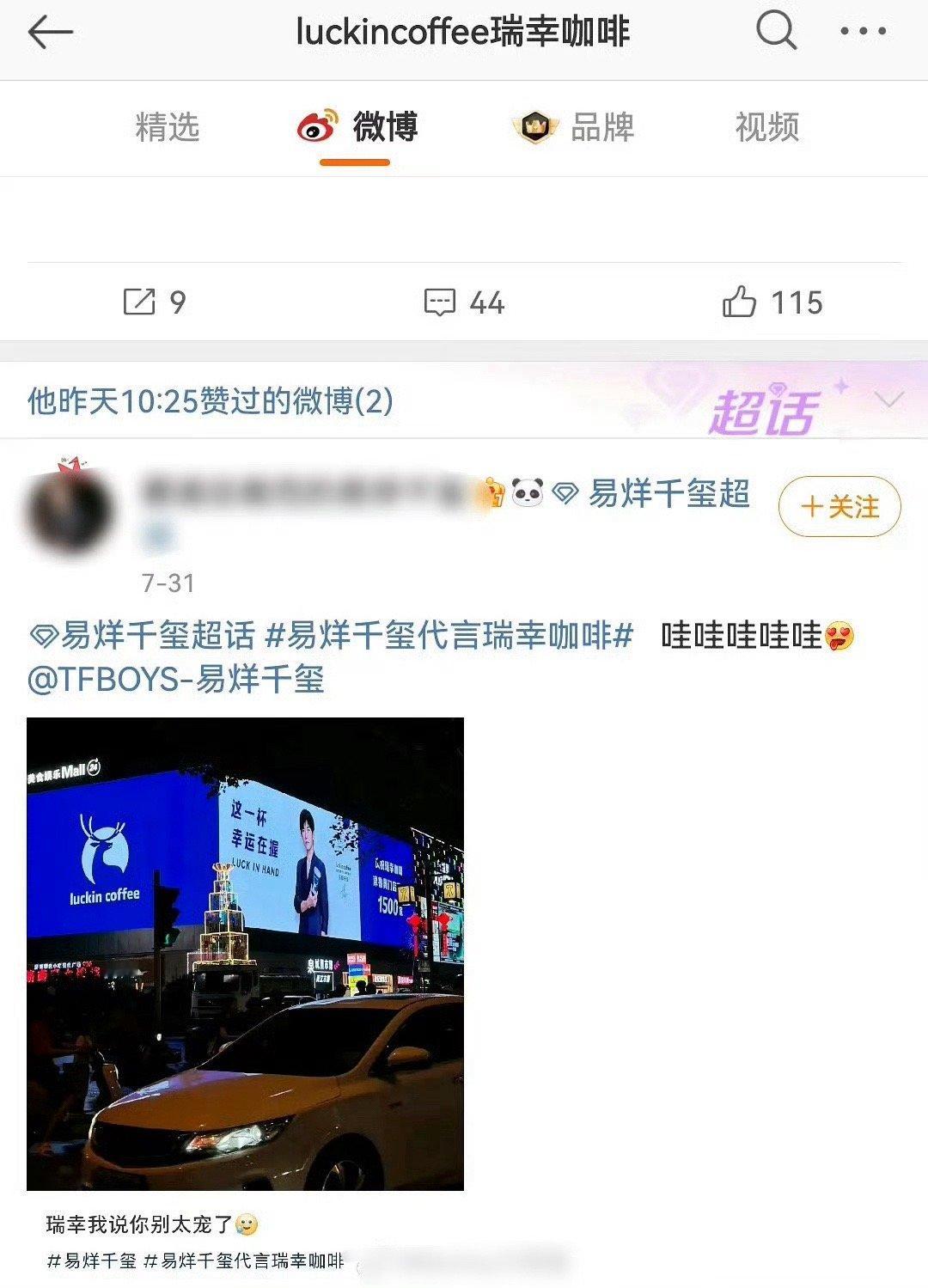 有粉丝称,易烊千玺身为瑞幸咖啡的全球品牌代言人,但国民度靠的是檀健次代言的即享咖