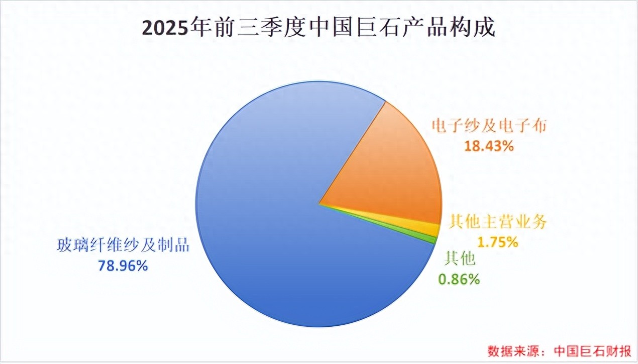 中国巨石的业务呈现出高度集中的情况,2025年前三季度,玻纤制品、电子沙和电子布合计占到总收入的97%以上。