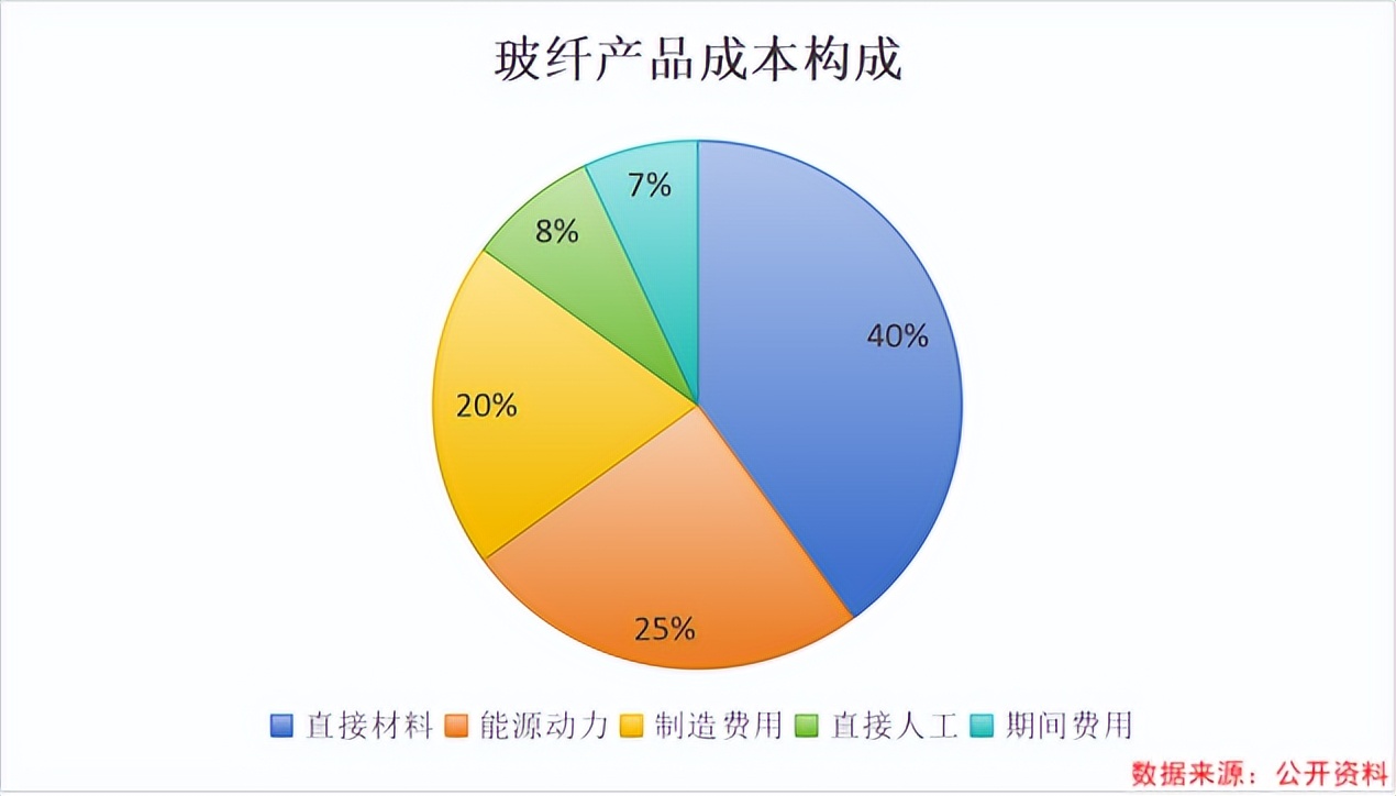玻纤的成本主要包括直接材料、能源动力、制造费用和直接人工和期间费用。