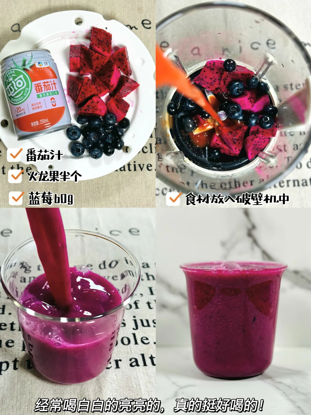 5️⃣番茄汁➕火龙果半个➕蓝莓60g