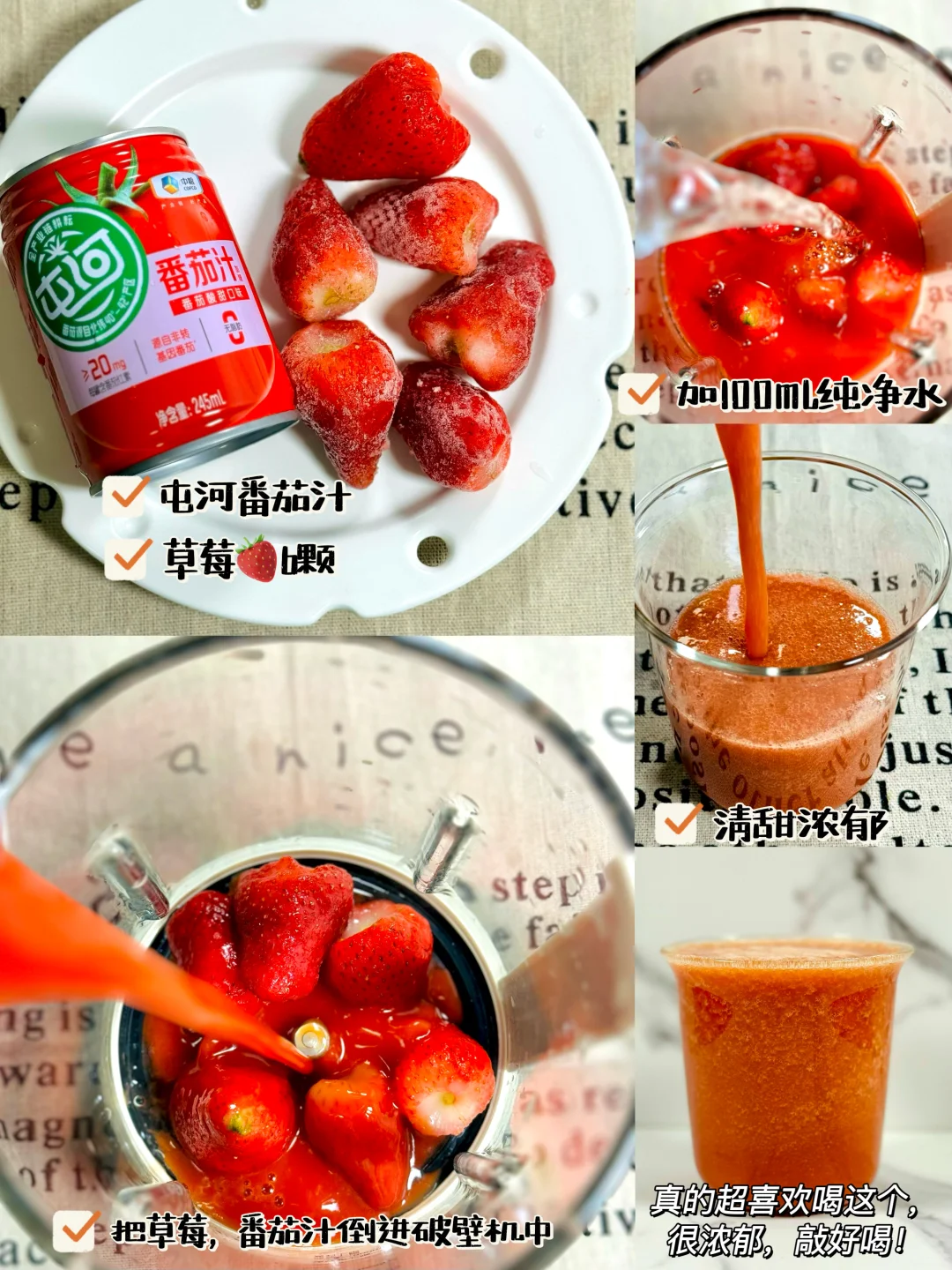 6️⃣番茄汁➕草莓🍓6颗