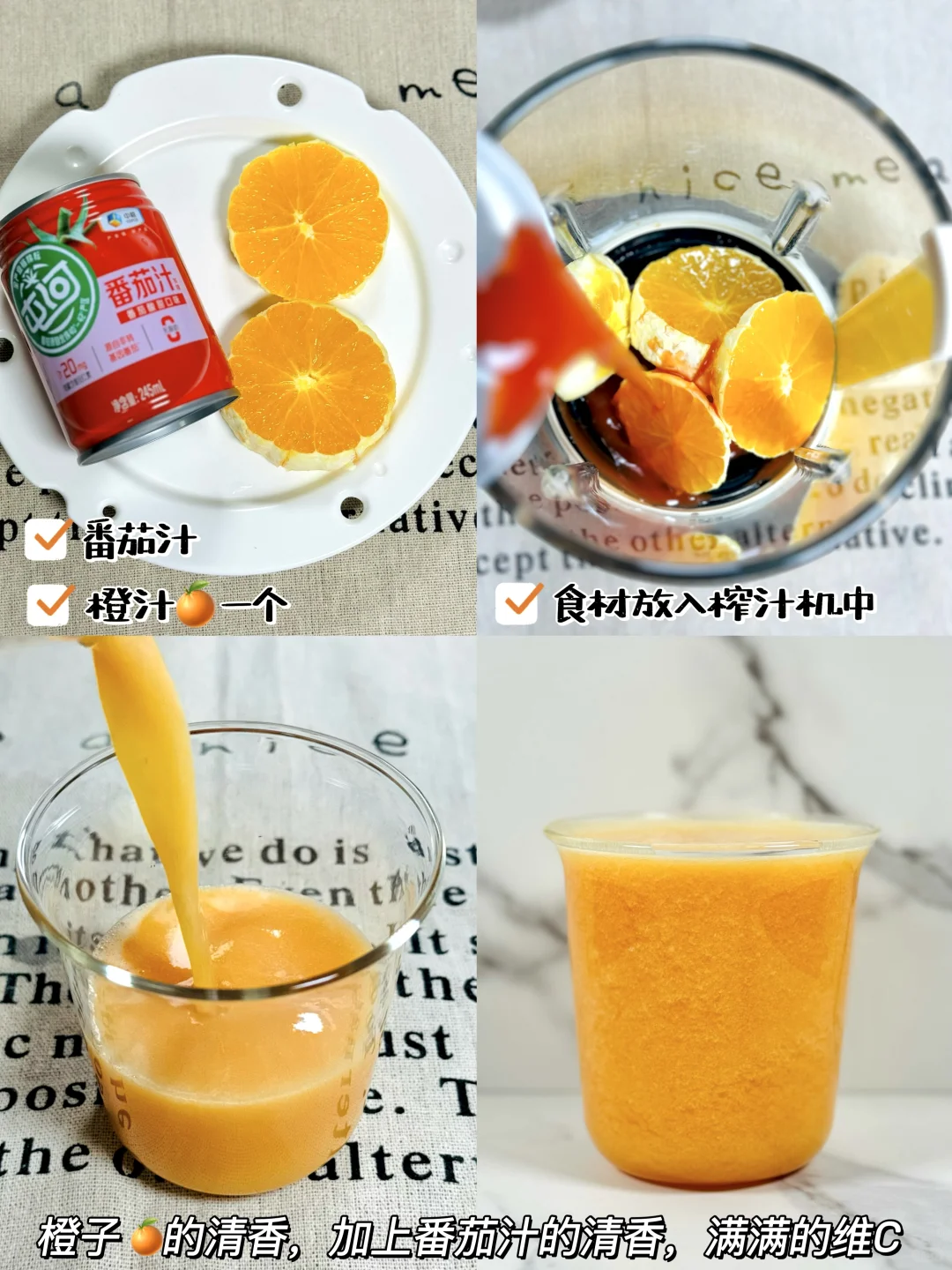 2️⃣番茄汁➕橙子🍊一个
