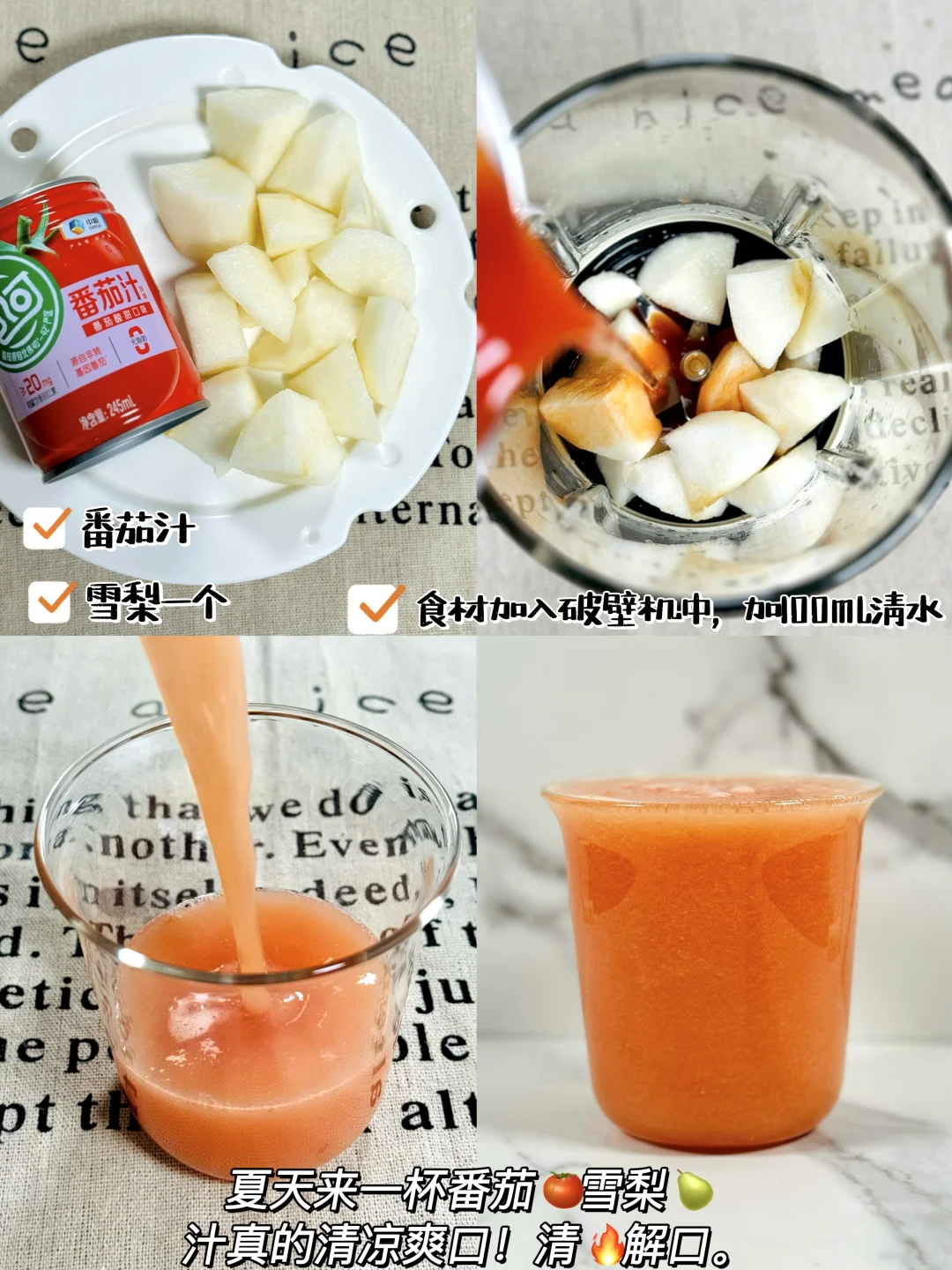 4️⃣番茄汁➕雪梨🍐一个