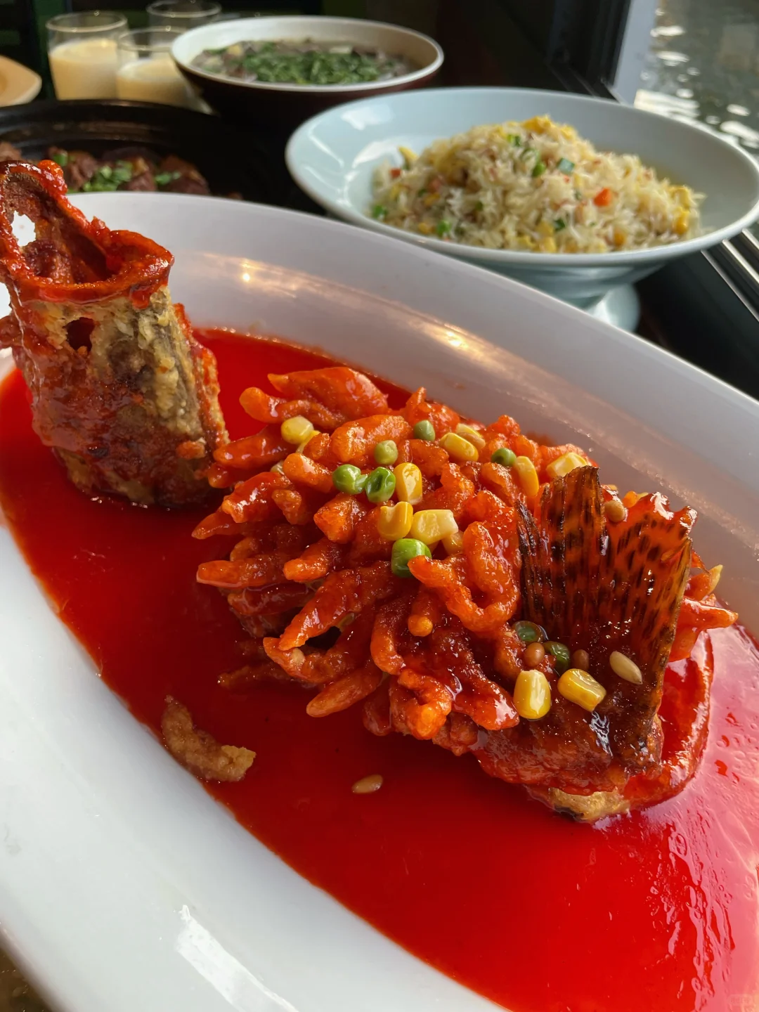 👉松鼠桂鱼🐟:造型别致,像一只可爱的小松鼠🐿。外酥里嫩,酸甜的酱汁让人胃口大开😍。