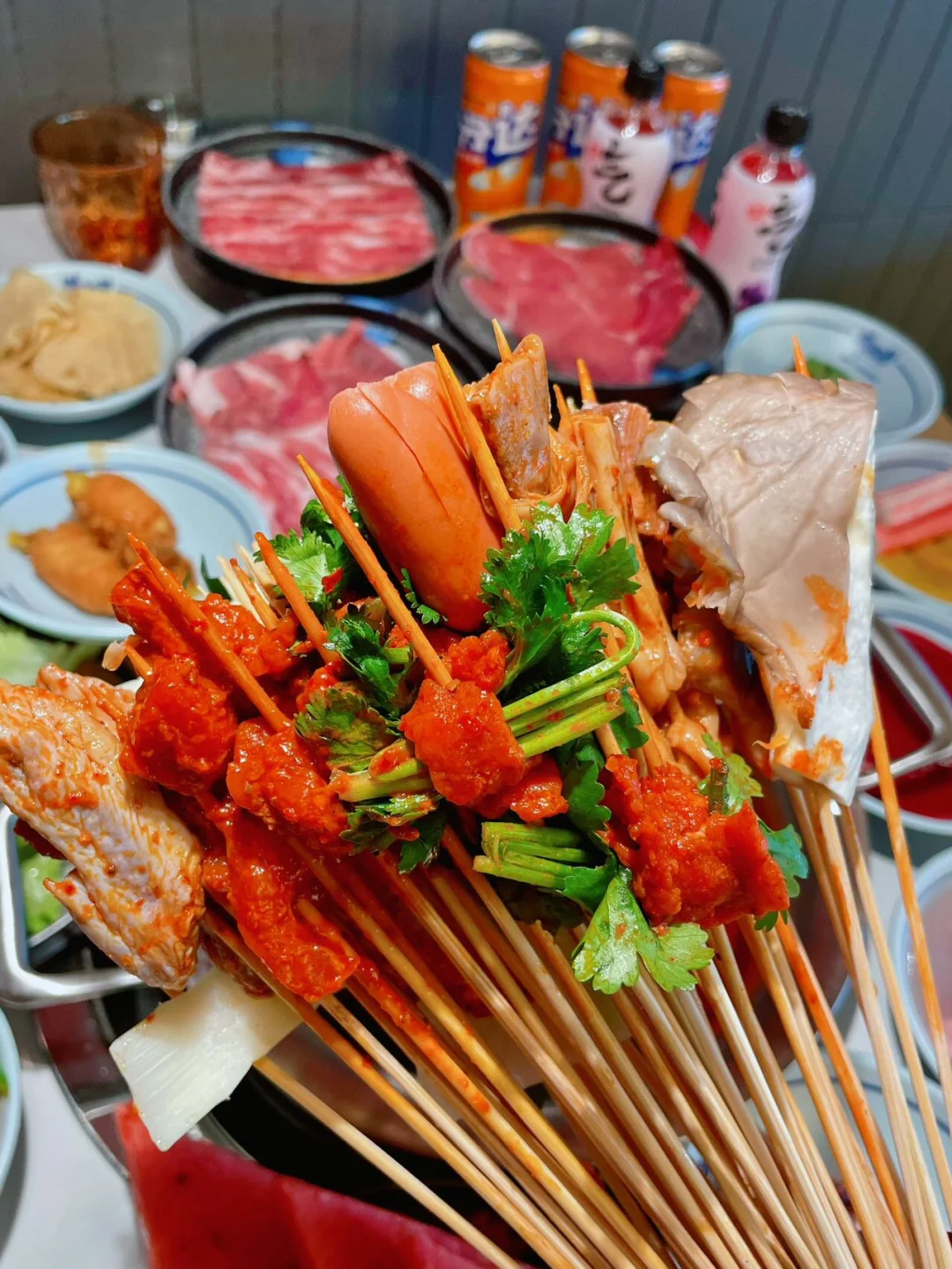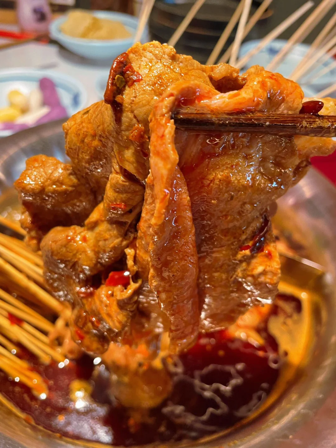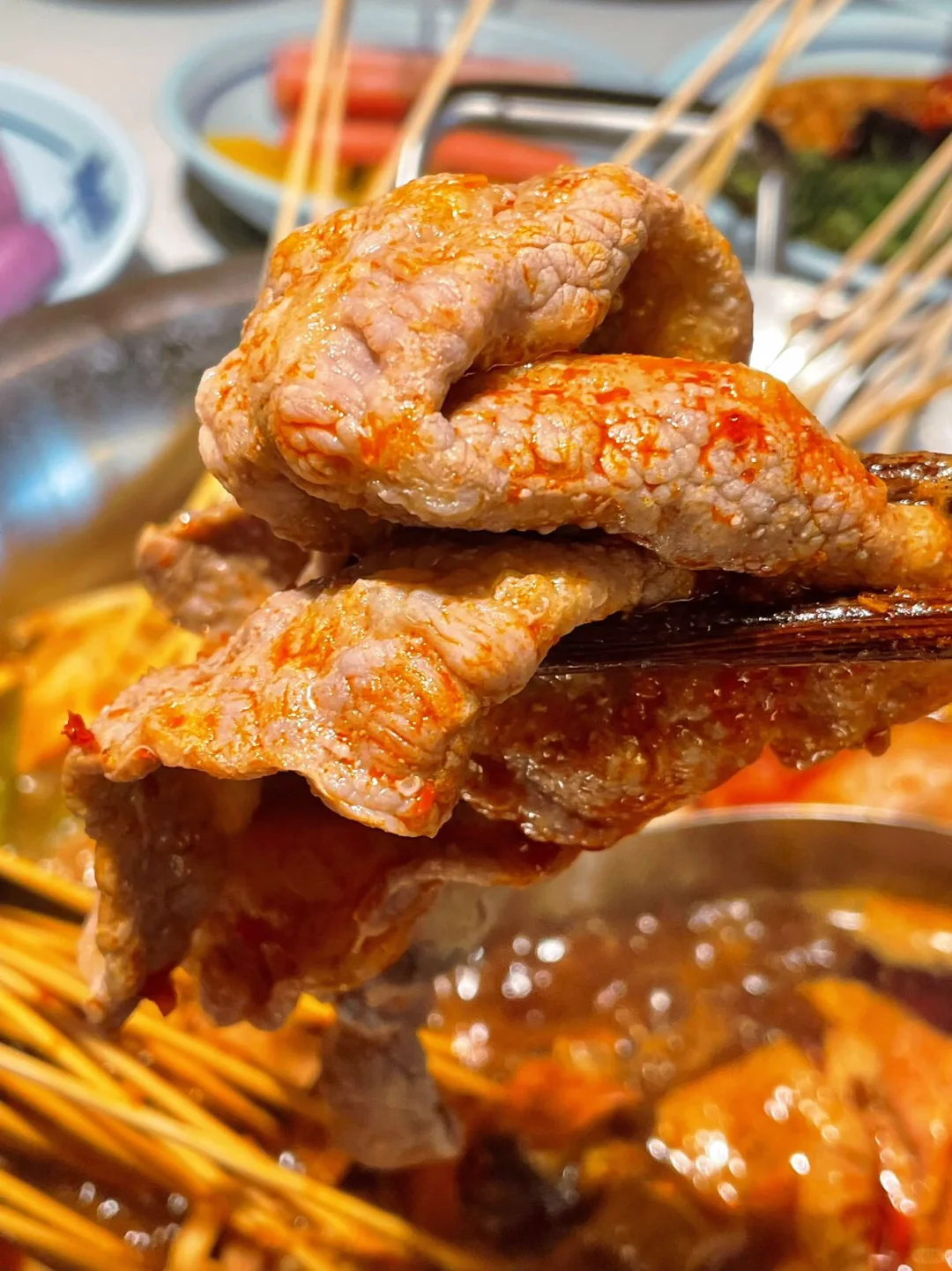 📣宝子们,😎集合啦! 都听说没呀!南京现在有超赞的 0 元锅底美食体验啦!!!🍲锅底和油碟都免费哦,还有上百种菜品可以随便吃不限量呢!我这个美食控必须不能错过,速速来探索。😎 💞贵州酸汤红锅跟牛肉片完美搭档,原切牛上脑、肥牛,全是纹理好看的大块肉肉呀!口感鲜嫩多汁且有嚼劲,🥩肉香四溢!! 串串🍢小郡肝,鸡翅尖,豆腐皮,麻辣牛肉等等应有尽有,特别是香菜牛肉,我这个香菜脑袋爱死啦,蘸上蒜泥油碟,哇塞,绝绝子!!! 吃不够根本吃不够!😁赶紧看日历📆准备安排二刷😎 📍牛天宝自助牛肉串串(南京首店店)