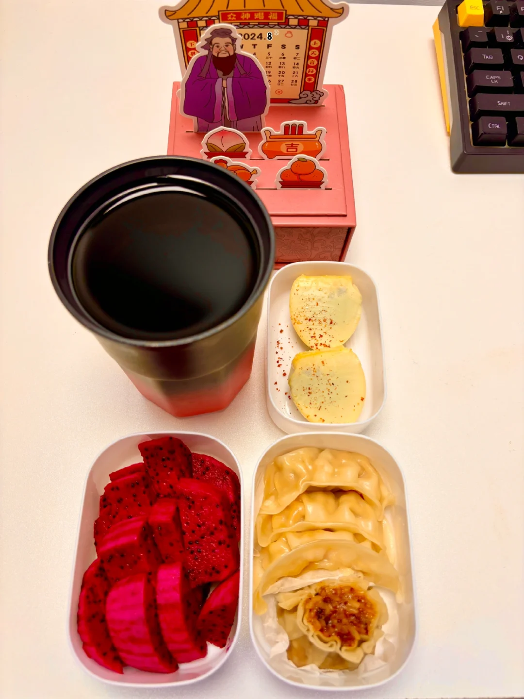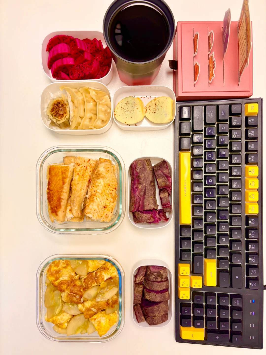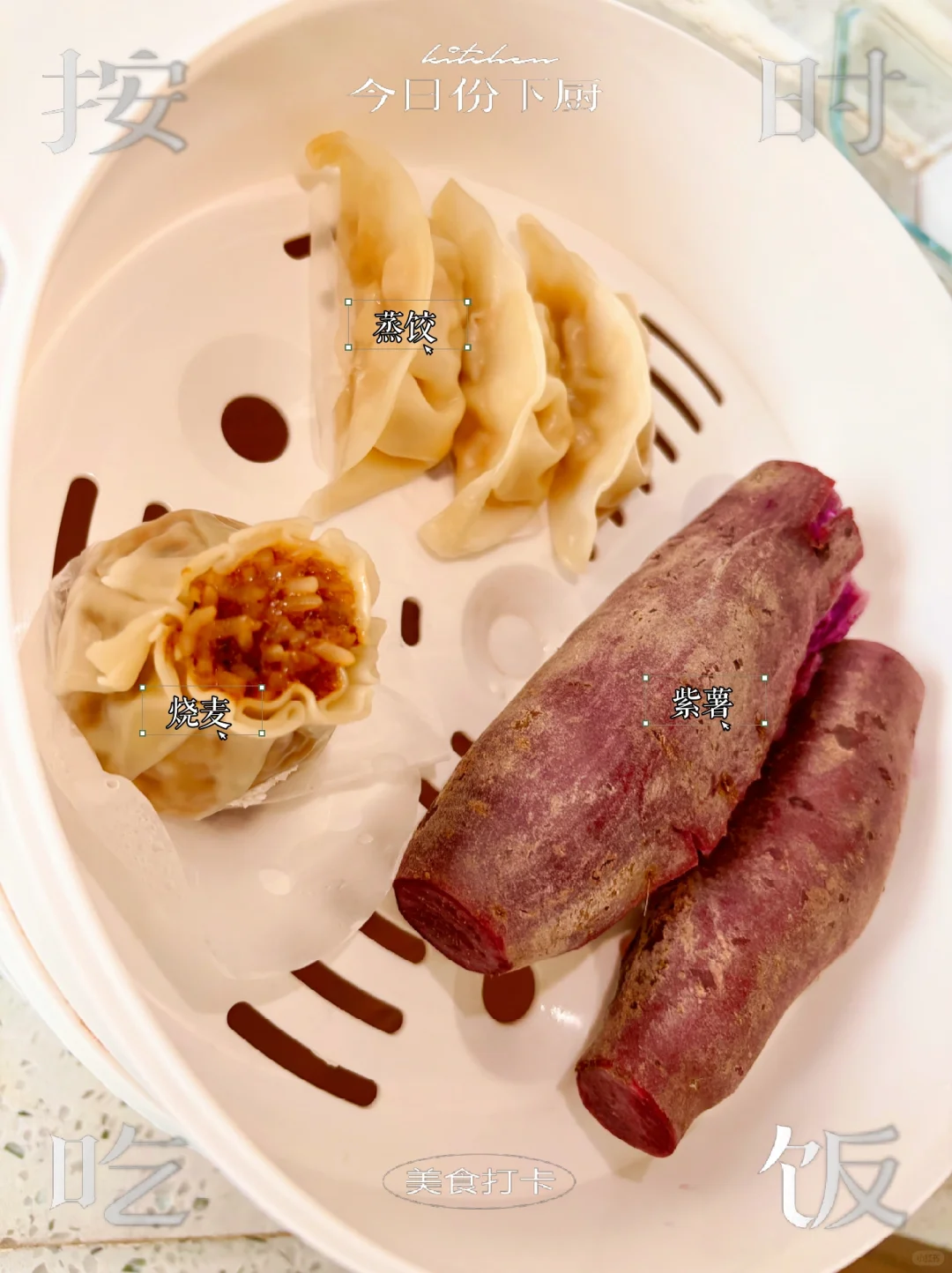 1⃣️早:烧麦、蒸饺、实蛋、黑茶(1.8💰) 2⃣️中:巴沙鱼柳、紫薯(5.8💰) 3⃣️晚:黄瓜炒鸡蛋、紫薯(3.8💰) 4️⃣水果:火龙果(0.5💰) 巴沙鱼柳在超市买的算5💰周末发教程 合计:11.9💰