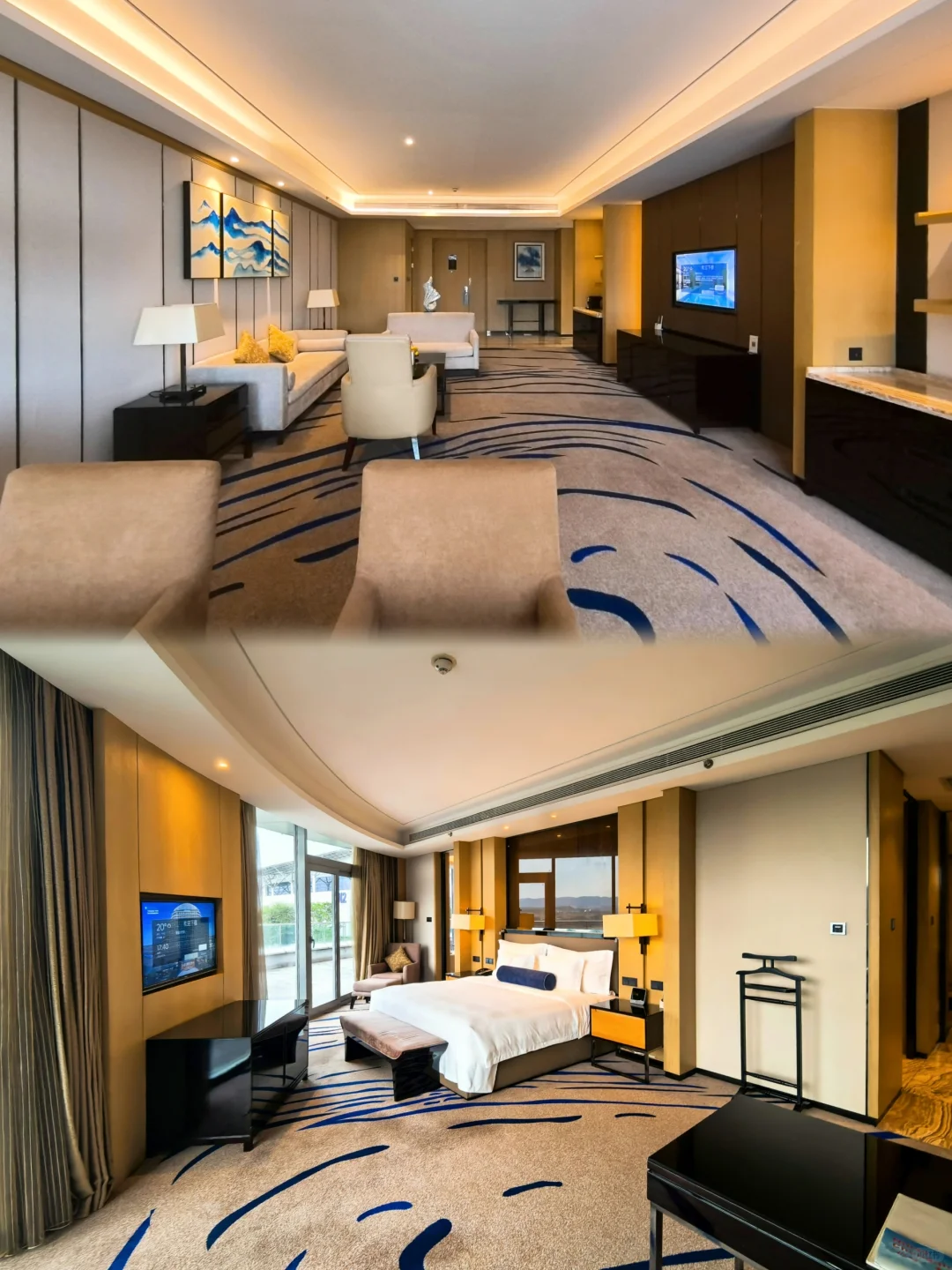 按照条款和酒店空房情况,钻卡订基础房型可以升级到豪华套房,但是❗️❗️❗️因为我入住当天是周末又碰上展会客房全满❗️难以置信直接给我升级了135平的温德姆套房,这个房型仅次于总统套房,也太幸运了❗️而且这家还可以送双早,这点很厚道。