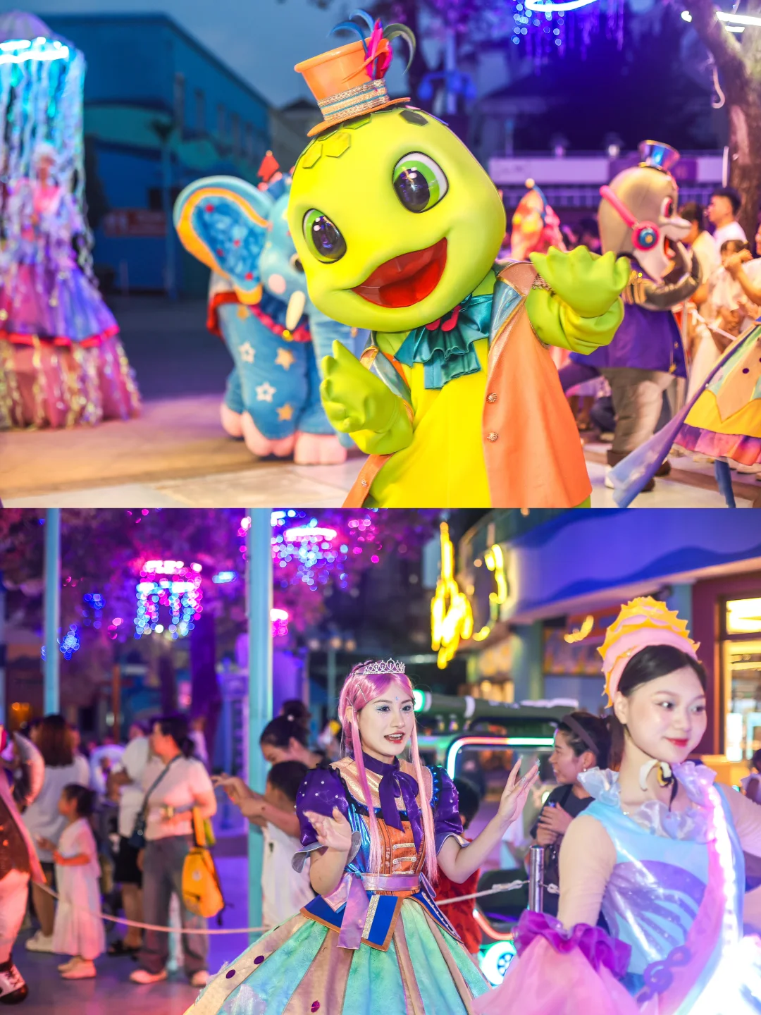 🎪动物狂欢大巡游:海洋明星与拟真动物巧妙混搭,浪漫花车携手非遗杖头人偶惊艳亮相,孩子们见了定会兴奋尖叫!