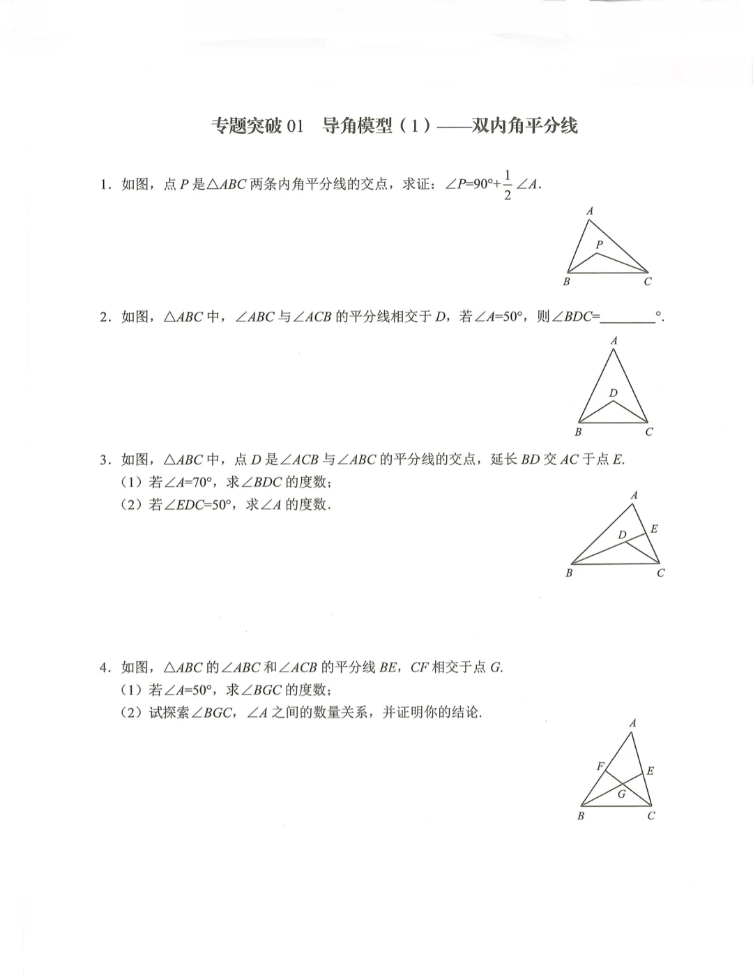 中考数学几何模型 初中数学知识点 初中数学笔记 压轴题 中考数学 几何 解题技巧 八上数学 几何模型 角平分线 初二数学
