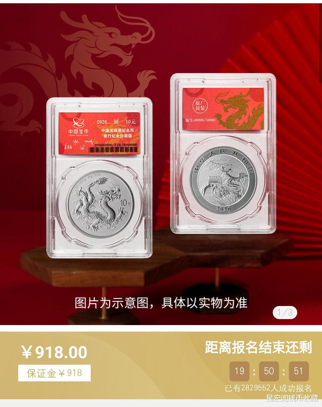 至于2026版中国龙银币封装纪念版,2026年3月6日也就是明天下午15点预约抽签结束,看了一下目前金币云商参与人数已经有280多万人参与,按照这样的情况来看参与人数可能会在300万人上下,这个也刷新了金银纪念币预约抽签纪录。