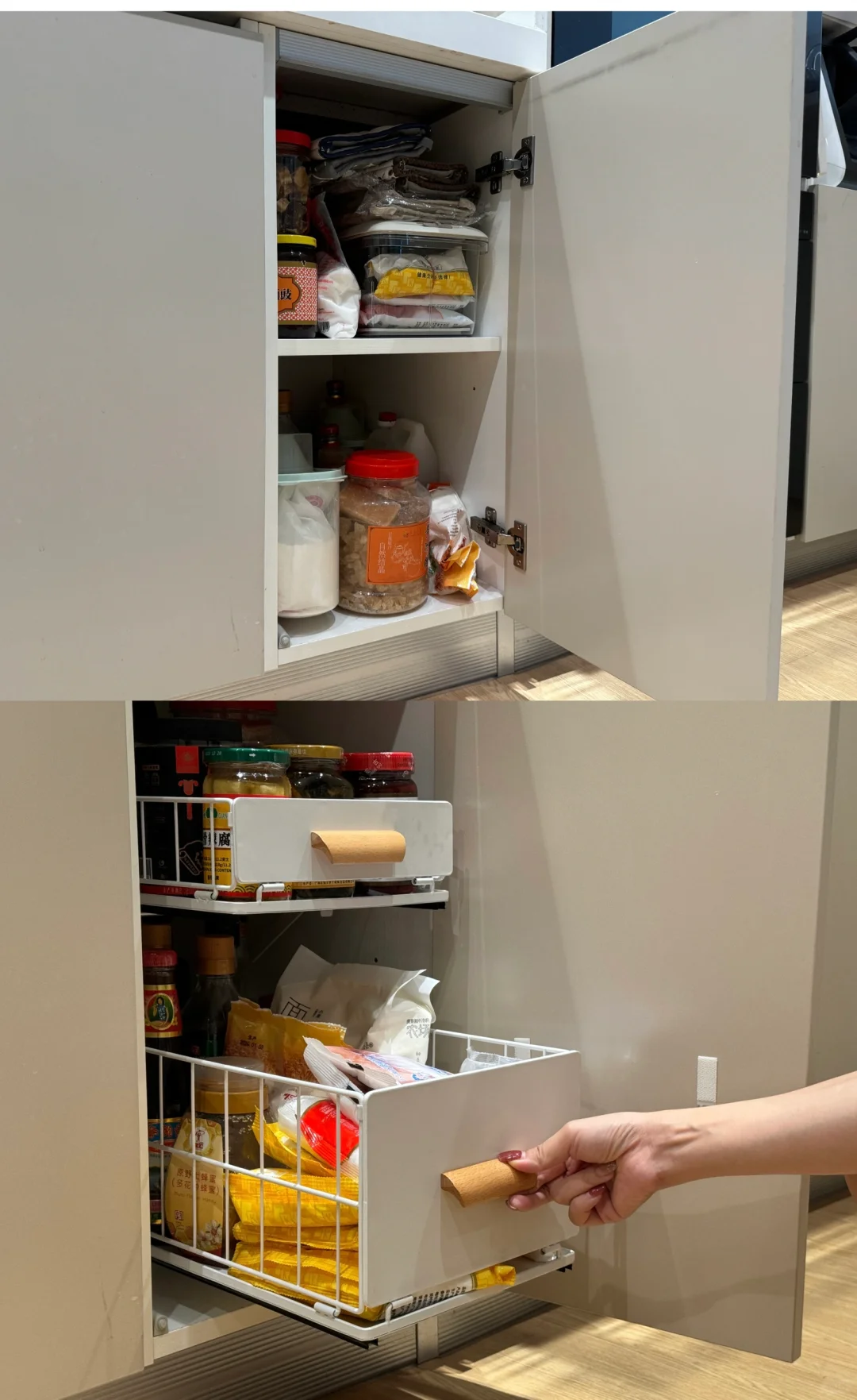 改造厨房收纳,简直太明智了!平开门变滑轨,取东西超顺手,橱柜利用率翻倍,幸福感直线飙升~