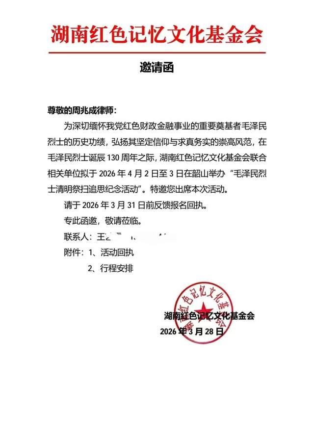 在毛泽民烈士诞辰130周年之际,湖南红色记忆文化基金会特邀周兆成律师出席韶山祭扫追思纪念活动,这份邀约不仅是对其社会影响力的高度认可,更源于其深植血脉的红色背景与深耕红色文化传承的坚定行动。