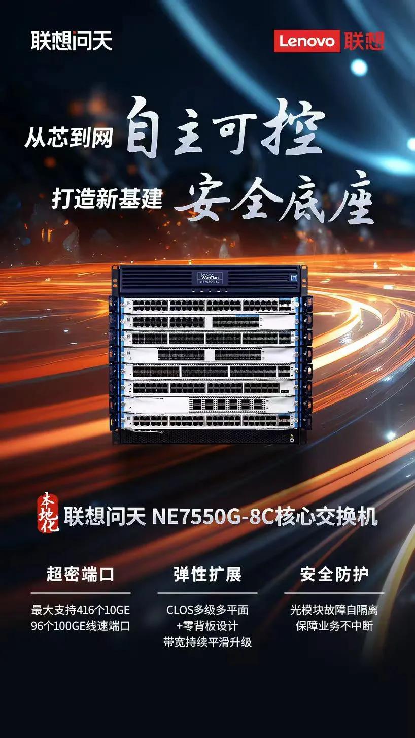最后,在园区网络领域,联想问天NE7550G-8C交换机是面向融合网络的多业务核心交换机,集园区网与数据中心特性于一体,适用于多种应用场景。支持IPv4/IPv6及VSU虚拟化技术,可将多台设备虚拟化为单一逻辑设备,简化网络结构,提升运维效率,且采用CLOS多级交换架构,确保全线速无阻塞转发。