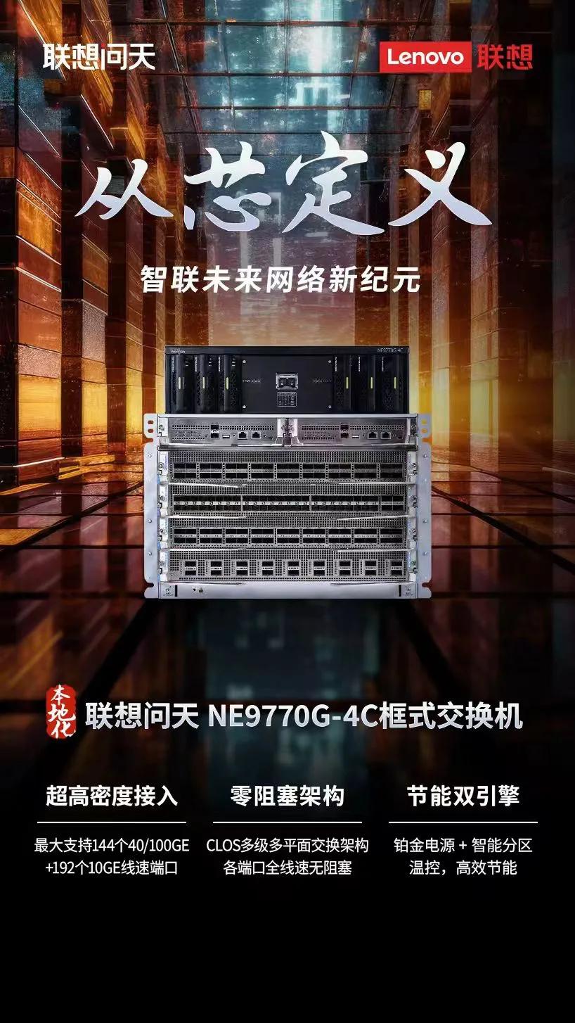 其次,在数据中心领域,最新推出的联想问天NE9770G-4C交换机,是面向数据中心及DCI互联的新一代国产核心交换机,其采用CLOS正交交换架构与零背板直连设计,降低信号传输损耗,支持向400G/800G平滑演进,基于CLOS多级交换架构,实现转发与控制平面分离,确保全线速无阻塞交换。