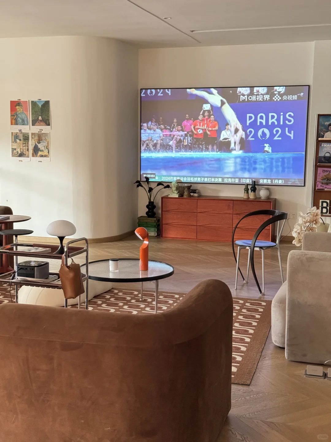 🏠自从客厅装了大屏幕(110寸的投影幕布),看奥运赛事就爽歪歪了,客厅从本来的静谧变成了热闹又休闲了,日常不看节目还可以播着音乐投屏,整个客厅都时尚起来。