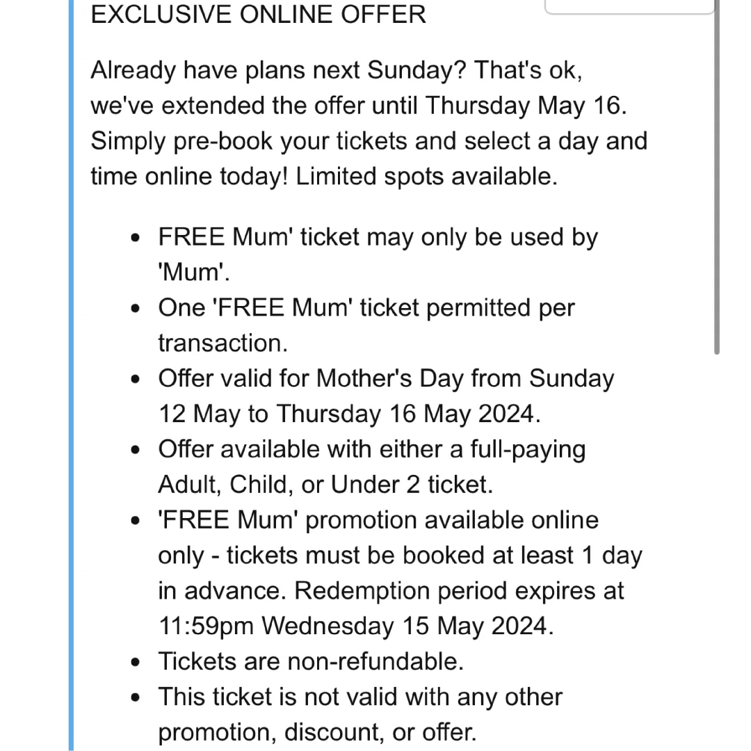 纽村海洋馆太贴心了!推出庆祝母亲节 母亲免费🆓进海洋馆的活动福利 送给所有妈妈们![哇R][哇R] ⚠️优惠只在网上提供-门票必须至少提前1天 ⚠️“免费妈妈票”仅限“妈妈”使用。 ⚠️每次交易可获一张“免费妈妈”票。 ⚠️2024年5月12日(星期日)至5月16日(星期四)母亲节优惠有效。 那就和孩子们一起去海洋馆庆祝吧[大笑R] 关注我,下一篇更精彩