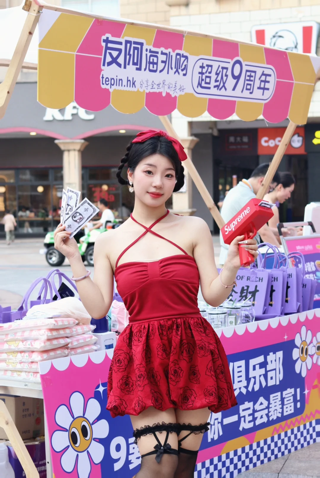 友阿海外购发财人大会友阿海外购超级九周年 9要发财茶 长沙拍照 打卡送礼物