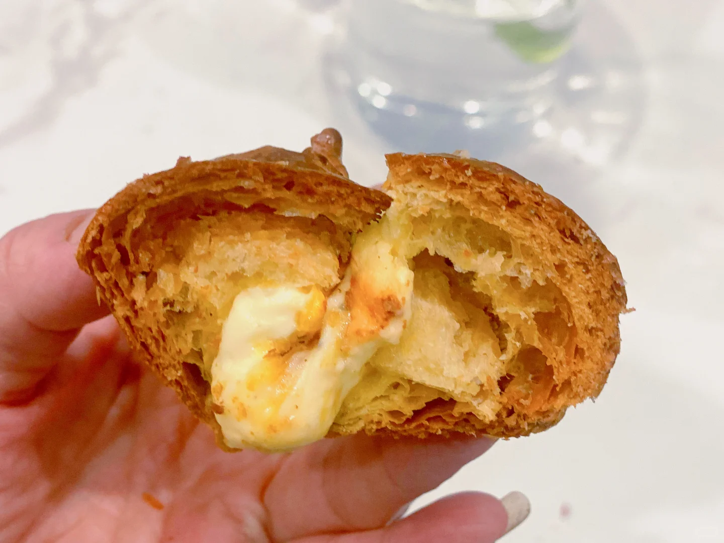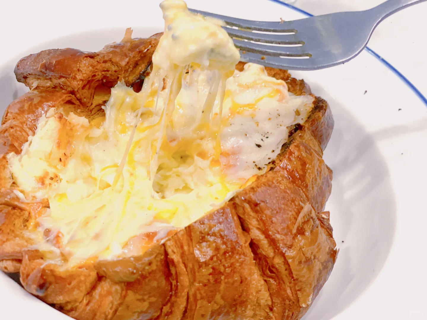 烤的酥脆的牛角包,浓奶香芝士味,一口爆浆的美妙!
