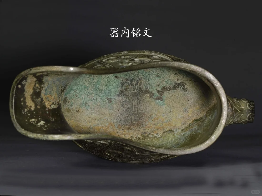 通高29.5厘米,通长31厘米,圈足长径16.7、短径12厘米。重4800克。