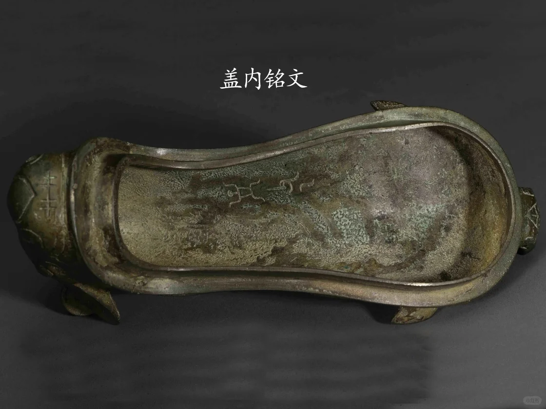 整器似兽形,分为盖部与器身两部分。器盖分首、身、尾三部,器身分颈、腹、圈足三段。器敞口,颈微束,腹部微鼓,圈足稍外侈(图一、二、三)。