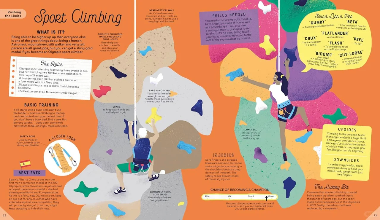 全书采用撞色风格,定格赛场上的瞬间动作,令孩子感受竞技的魅力,从运动中获得精气神与行动力。这本书更是不可多得的励志教育——每一场比赛,都是一个浓缩的励志故事;每一块奖牌,都是汗水与泪水凝聚而成。最为难得的是,本书中介绍了残疾人奥运会的相关项目,展现了残疾运动员的坚强不屈,让孩子深刻理解体育竞技的意义与奥林匹克的精神。