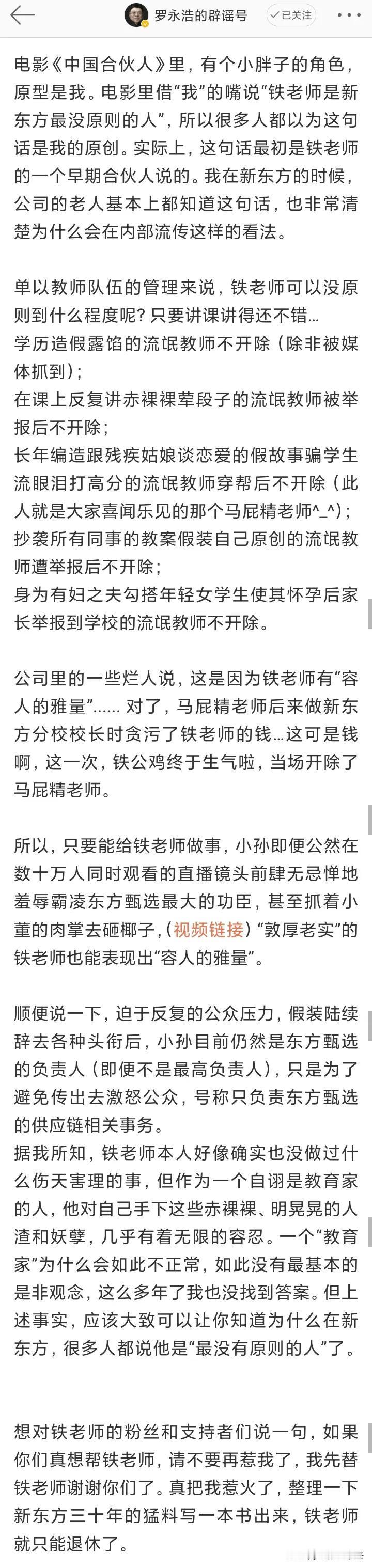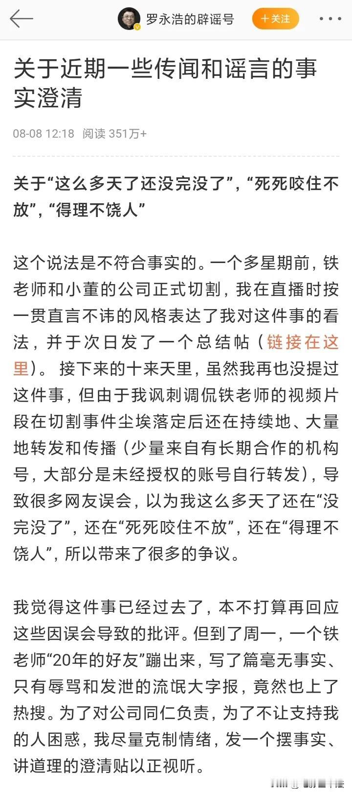 罗永浩5000字长文看完了,觉得他有个能力值得所有人好好学习一下:嘴里说着我不想害你,但是把该说的和不该说的,全说了,还拿着小本本把多年前的一件件小事记下来。佩服!#罗永浩发长文回应“五宗罪”#