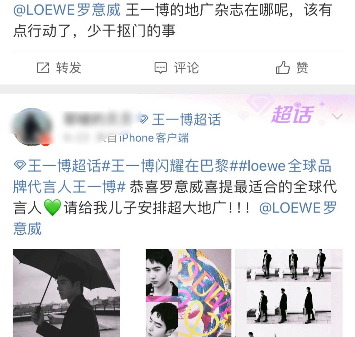 粉丝吐槽,称王一博作为罗意威全球代言人,罗意威官博没有给王一博安排地广,甚至王一博生日当天,官博都没有发文祝福,但是之前的其他明星却有……