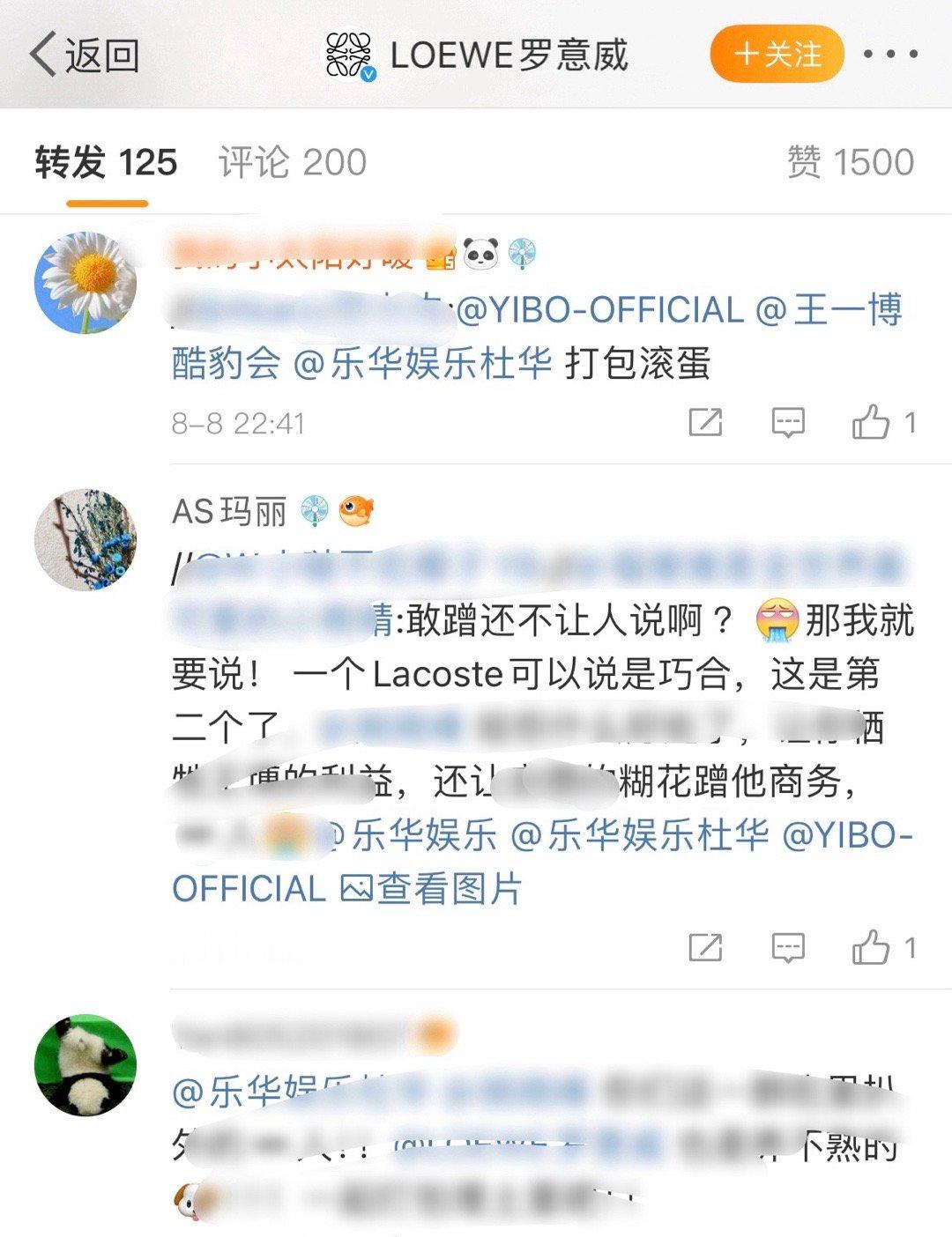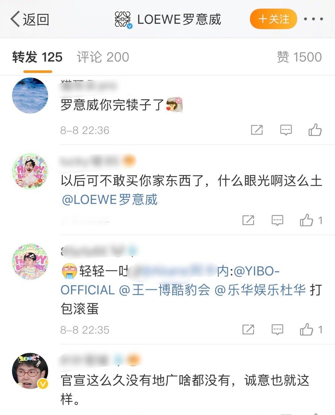 罗意威官博开启精选模式……起因是罗意威官博发了兰西雅的宣传图,粉丝说这是在蹭王一博的商务,还说罗意威眼光太土……