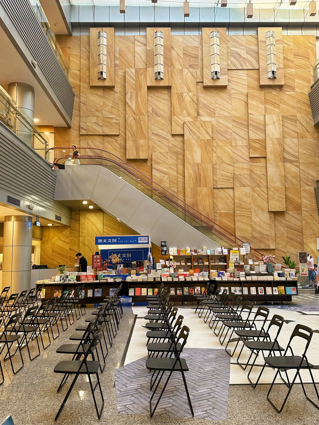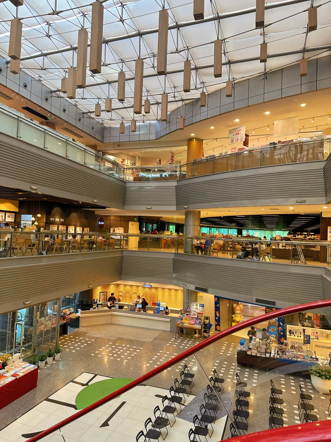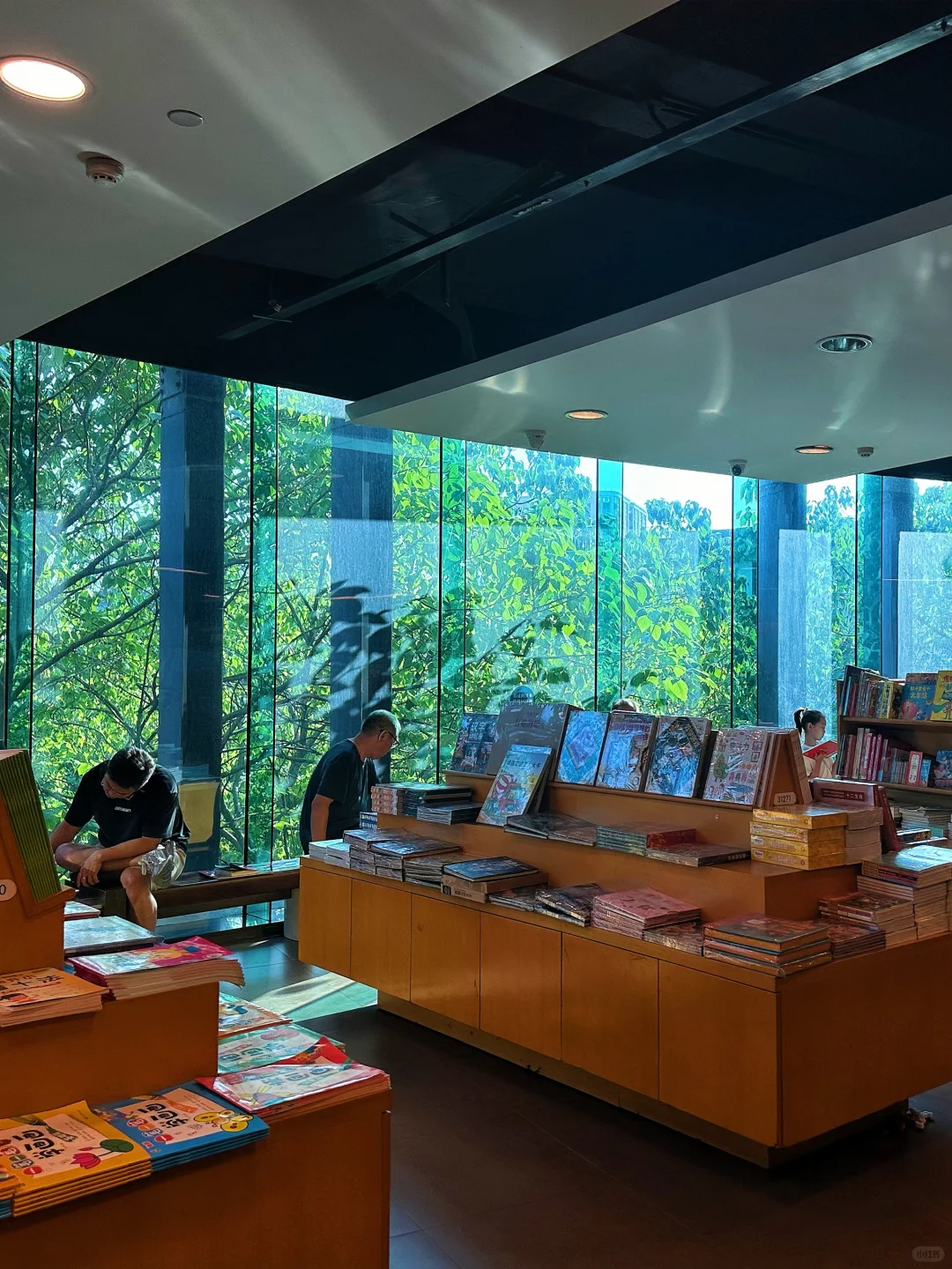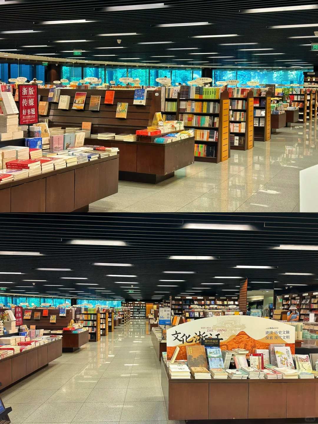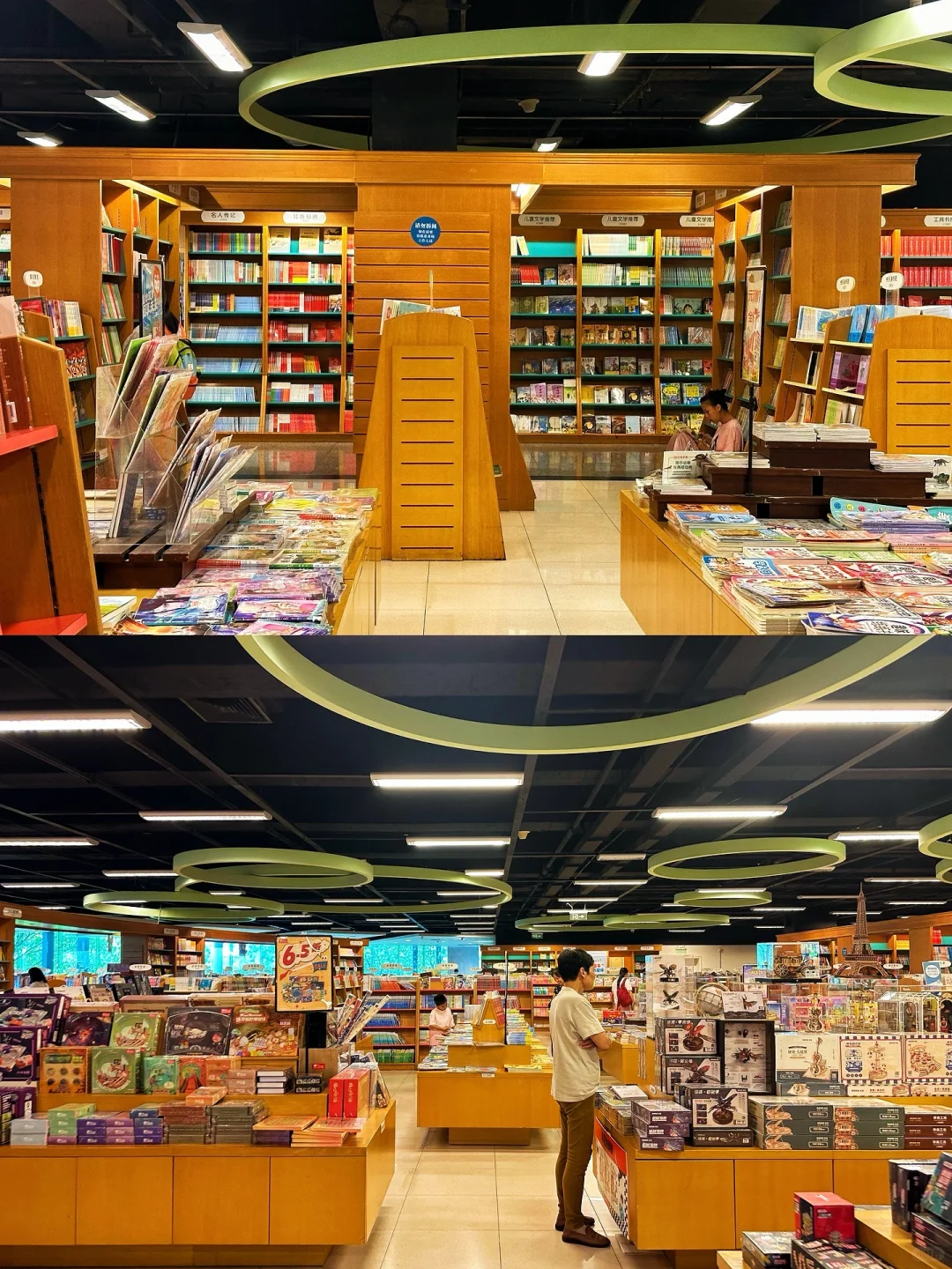 🍃书城很大,装修环境优雅,很适合阅读和办公,一共有三层。一楼是热销书籍和一些文创;二楼有餐吧和落座区,落地窗边的位置都是需要消费落座的,餐吧提供咖啡☕️、甜品🍧和简餐🍝。二楼书籍类目很丰富,特别是文化历史、经济金融、法律政治、文学小说等;三楼是儿童书籍和辅导书籍,很适合家长带孩子来看书。