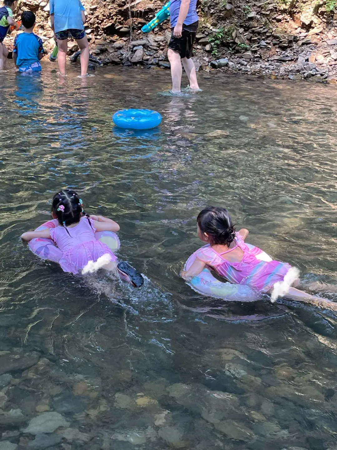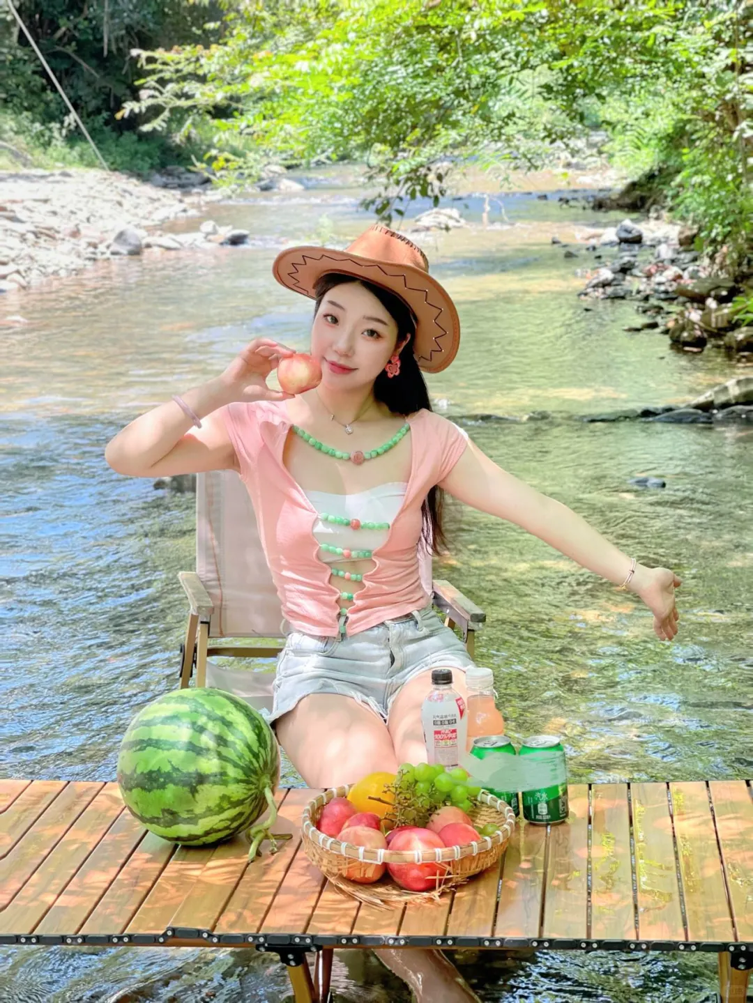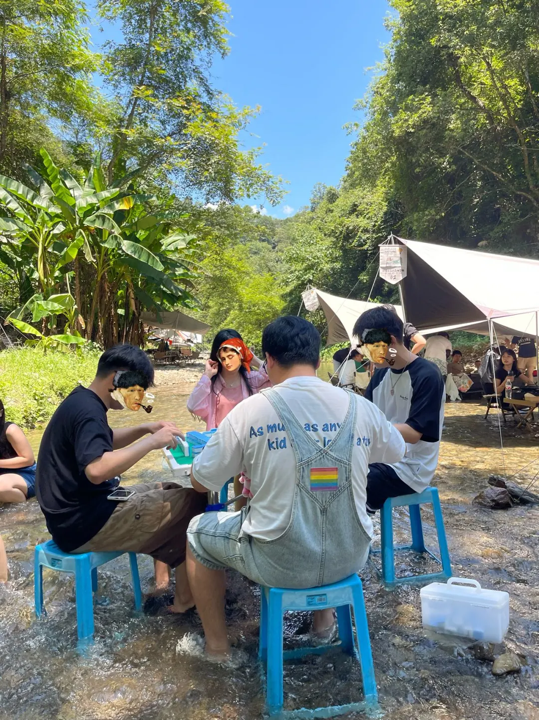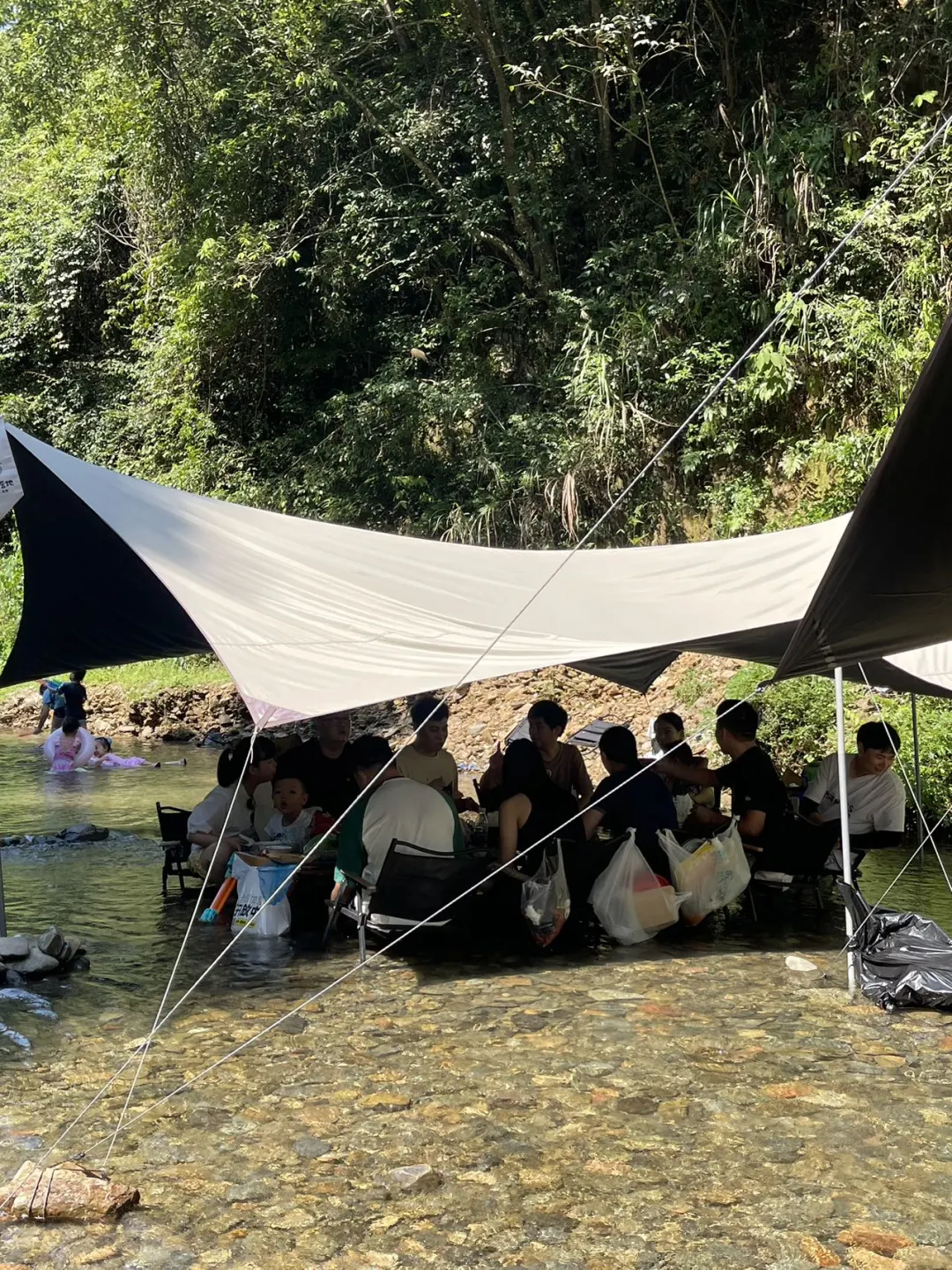 溪边都是搭好的天幕和露营桌凳,依水而坐