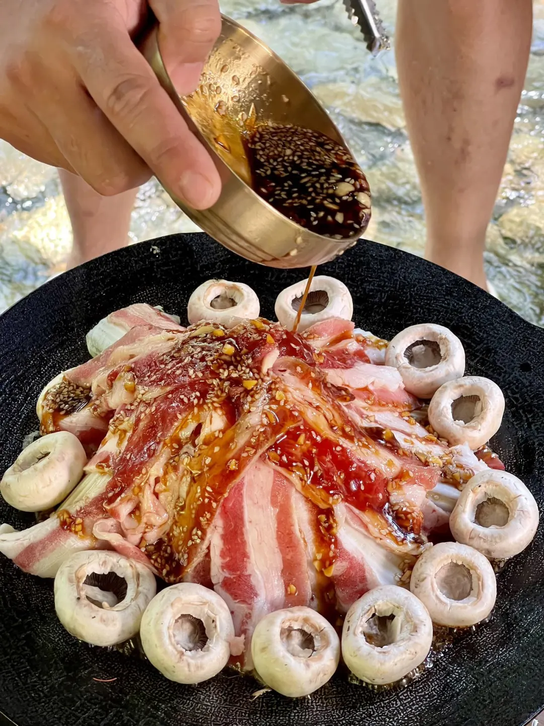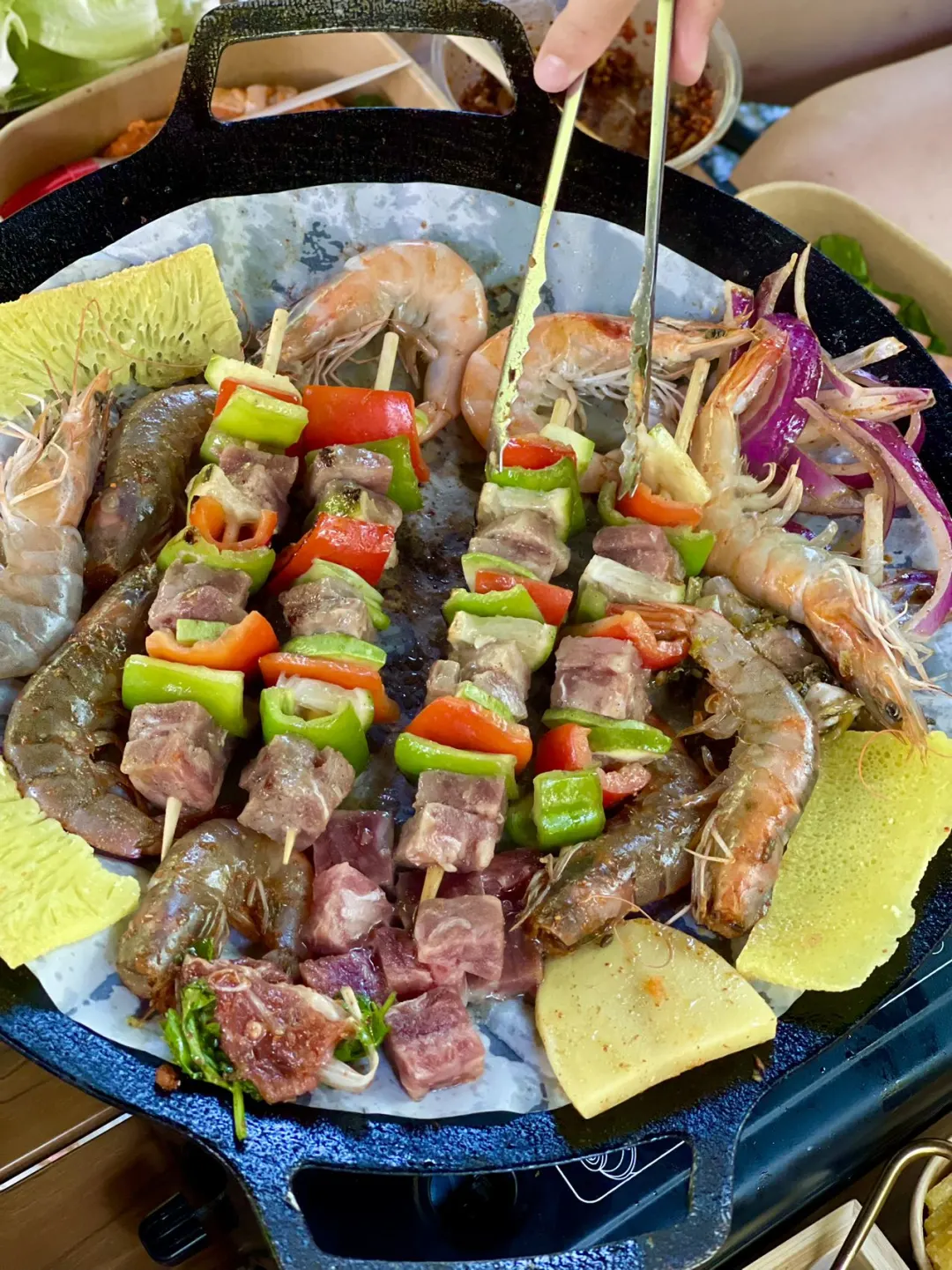可以直接露营烤肉,品尝美味的火山肥牛和彩虹水果烤串。颜值真让我眼前一亮。那火山肥牛,从外观上看就满满的诱惑力。鲜嫩的肥牛油脂丰富,当它在高温下烤制时,油脂渐渐融化,一点也不觉得油腻!