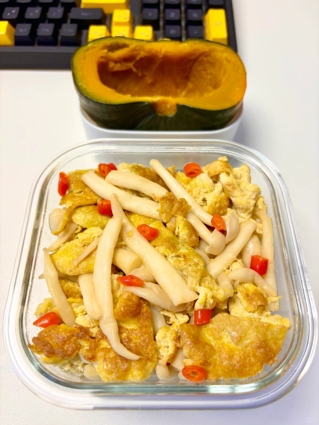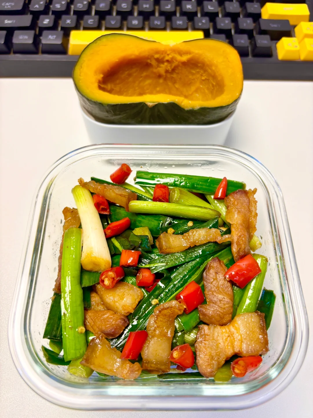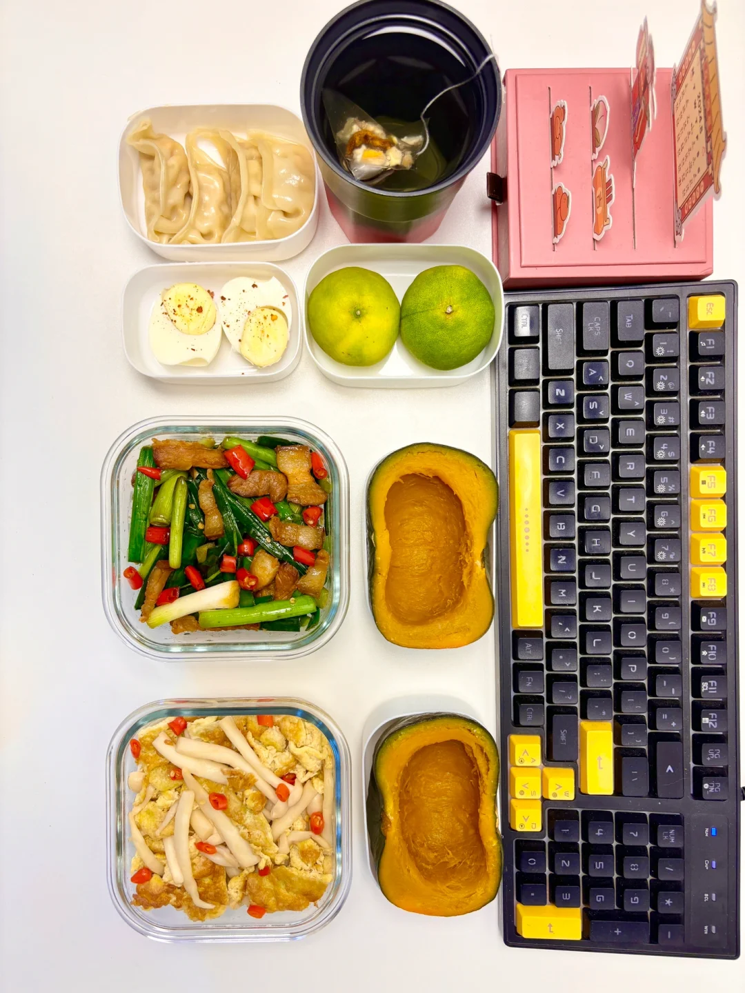 1⃣️早:蒸饺、鸡蛋、茶(1.5💰) 2⃣️中:蒜苗炒肉、南瓜(4.2💰) 3⃣️晚:海鲜菇炒蛋、南瓜(3.4💰) 4️⃣水果:橘子(0.7💰) 猪肉菜市场买的14一斤用量2💰 合计:9.9💰