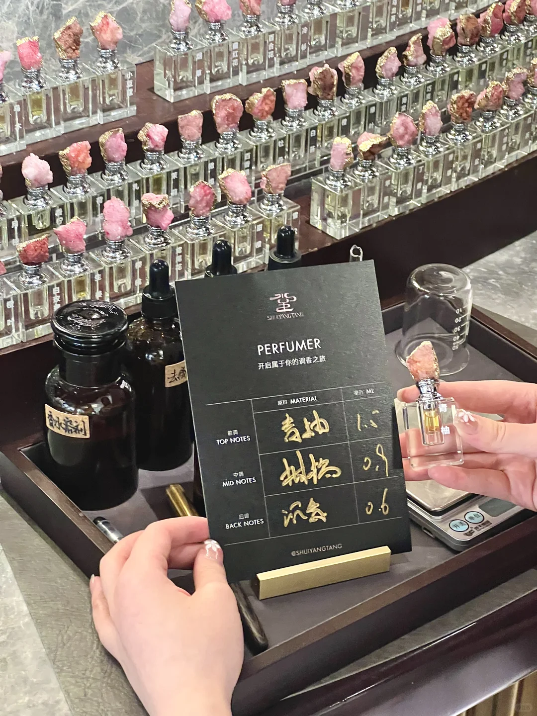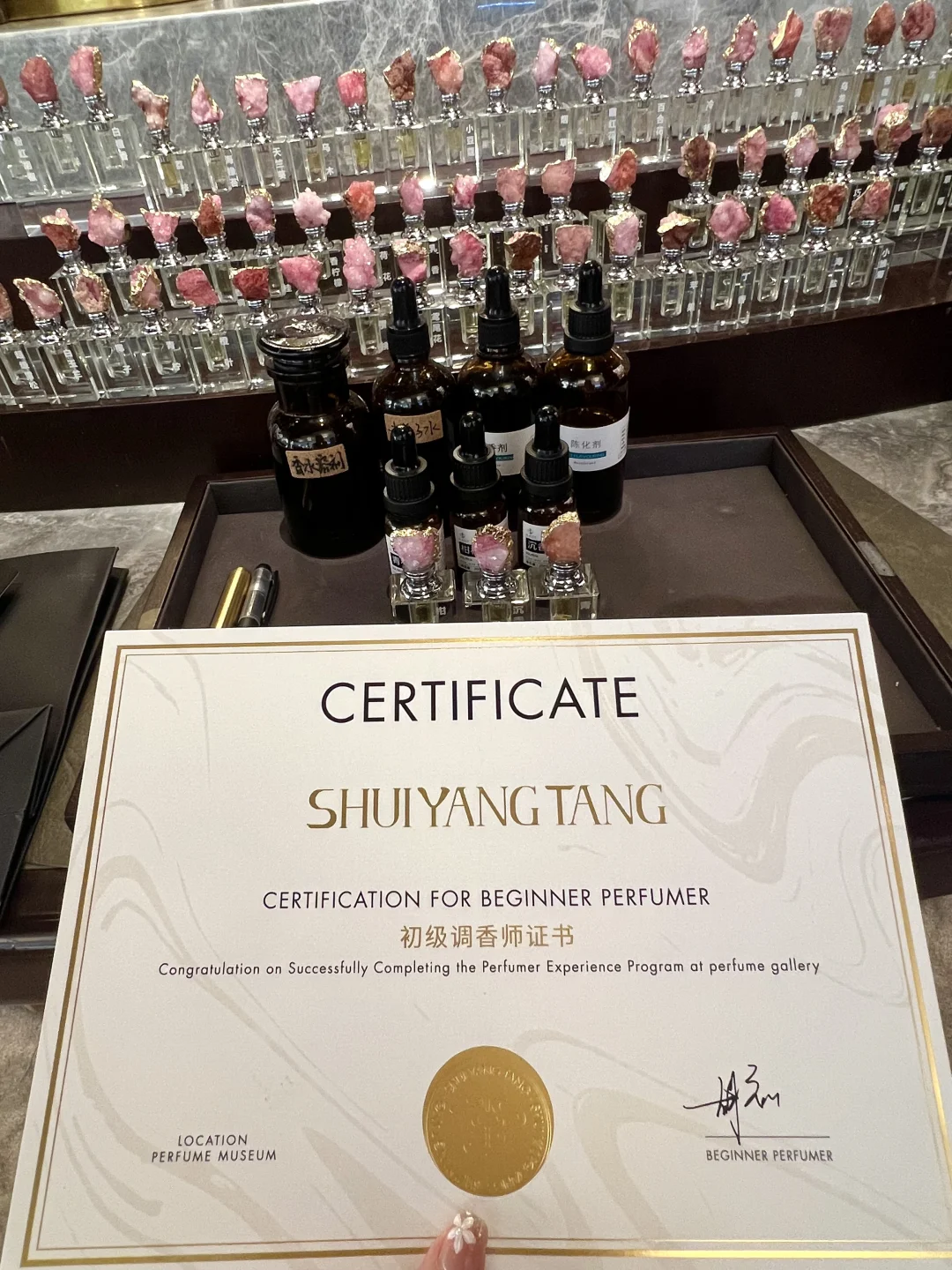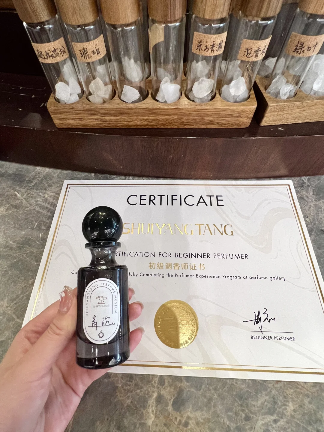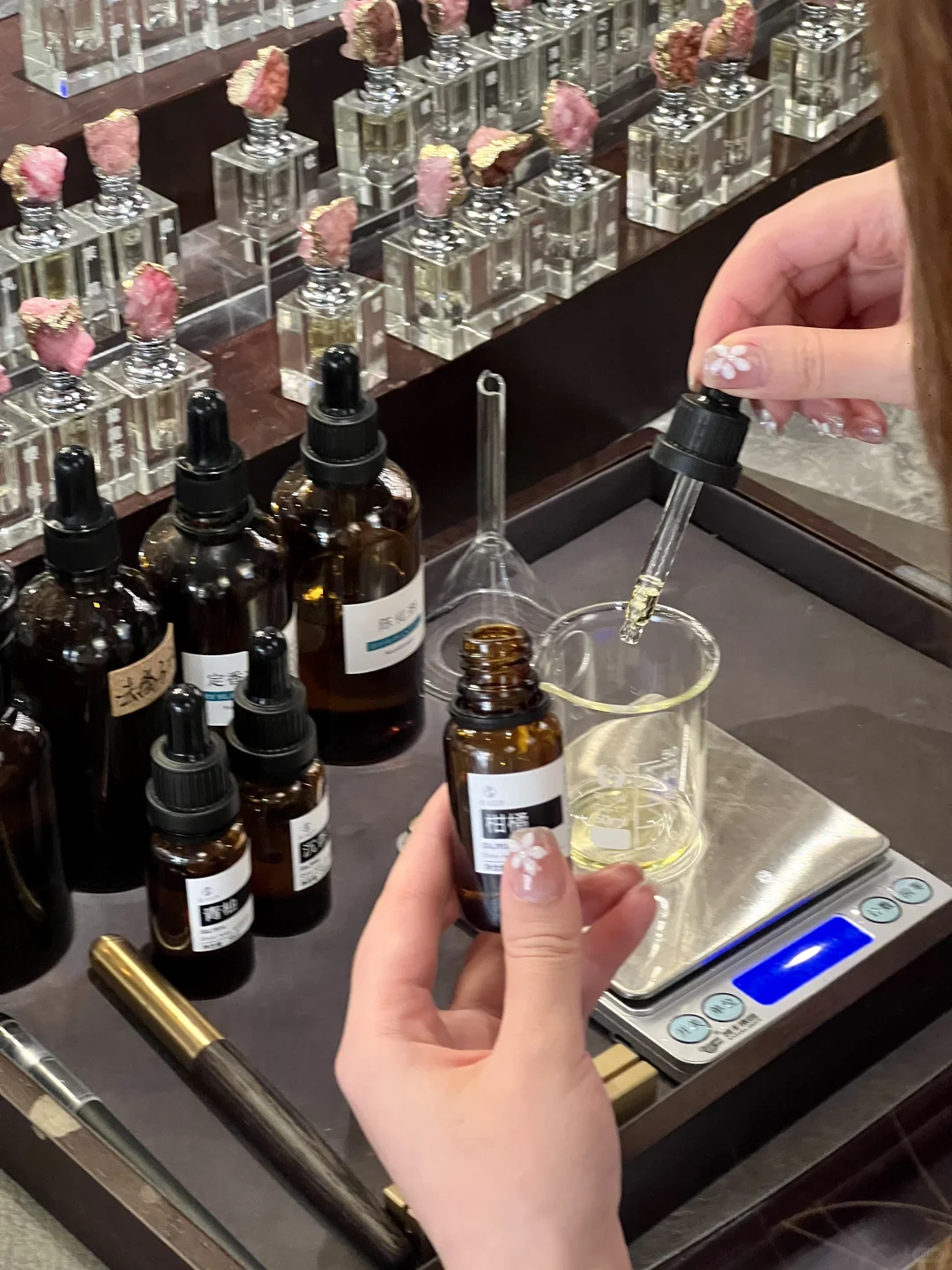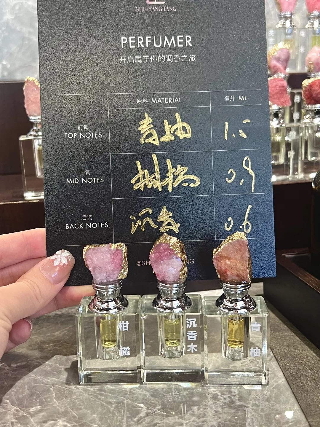 在国金中心这里有家香水馆(叫➡︎水羊堂) 进去一整个人惊喜住了!! 里面有好几墙小众沙龙香水 香水好多....完全看不过来 这里竟然能diy自己喜欢的香水🥹🥹 ✔︎选香 我选了青柚、柑橘、沉香三种,有种夏日清晨的清新,是我喜欢的香味 ✔︎按比例调制 ✔︎选择喜欢的香水瓶 香水瓶好看高级🥹 过程有调香师耐心告诉你步骤 还会颁发调香师证 仪式感直接拉满了!!🤩🤩 哇哦...香水会搭配木质礼盒..妥妥的高级感 在国金二楼(📍水羊堂)