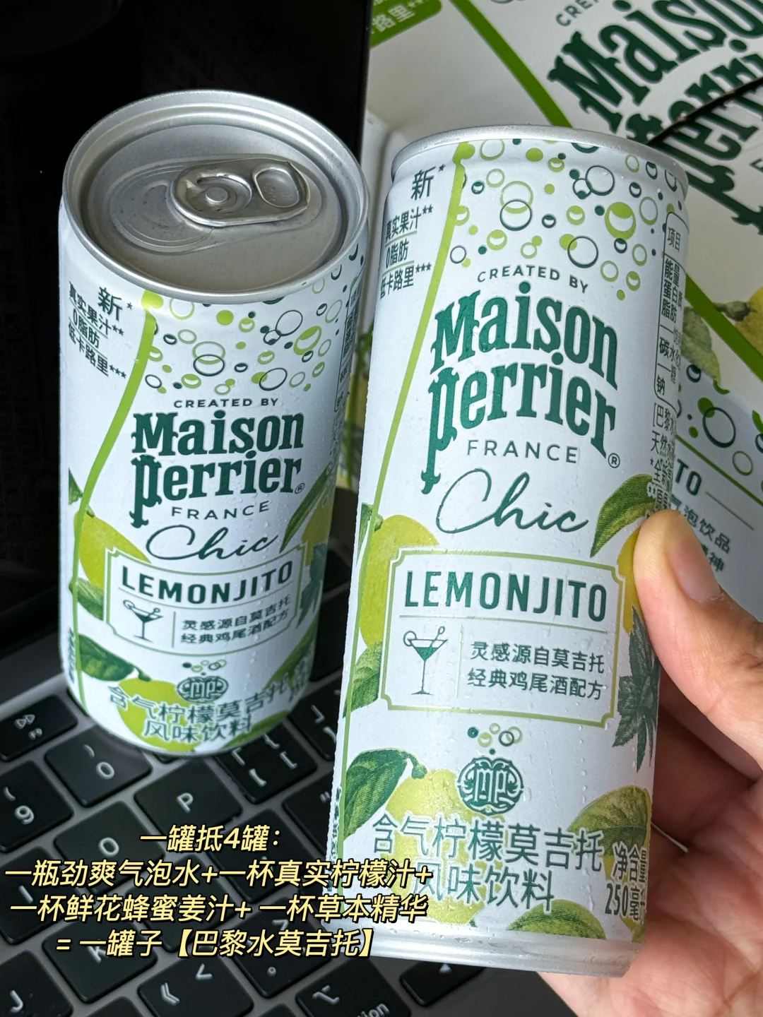 【巴黎水莫吉托】和【巴黎水柯林斯】两个口味 ,虽然0酒精  但喝起来是鸡尾酒的风味~ ✔️【巴黎水莫吉托】 气泡🫧和鸡尾酒风味🍹的完美融合 1:1复刻了莫吉托的配方,嘴巴里充斥着 柠檬🍋‍🟩和清新的薄荷香 好适合夏天 一口下去清爽解腻 配方也很干净,只有南法天然水+天然果汁+丰富草本精华~ 还是0脂低卡的,喝起来真的无负担 聚会提一箱chic去姐妹👭家 加点冰块🧊一边看奥运一边喝,好chill! 而且包装也好吸引人!冰箱包的设计 拆开以后可以直接放入冰箱 尊嘟好方便~ ✔️【巴黎水小彩罐】 6种炫彩口味搭配6种配色的瓶身~ 我买了桃子🍑、西柚、青柠🍋‍🟩、百香果四个口味 我个人好爱【巴黎水西柚味】!加点西柚果肉和柠檬🍋冰块🧊 每天都想喝一杯! 关键它是0糖0脂0钠0卡0甜味剂的,对减脂期的我来说真的hin健康。 这么好喝的巴黎水谁能不爱呢~